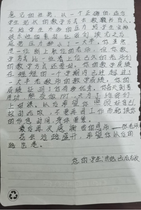 就是这样的班级,在短短一学期,我与他们真正融合在一起,亦然忘记自己在祖国的最西边、距离家乡3000余公里的一所县城工作,能够铭记的是此刻的欢声笑语,我也渐渐的意识到“教师”的意义所在。