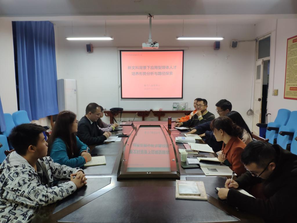 首先,谭诗民老师分析了“新文科”理念的形成历史和“新文科”语境的时代要求,指出“新文科”应具有现实对策、跨界融合、技术优先、国际视野、人文视野等特征,并结合“新文科”背景下应用型媒体人才的培养形势,就未来人才培养的路径和方法分享了自己的思考和建议。随后,全体参会教师围绕主题踊跃发言,对院系的发展积极建言献策。老师们一致认为“新文科”背景下应用型媒体人才的培养,需要加强通识教育,提升员工的综合人文素养;需要加强课程建设,搭建融合新闻学、新媒体运营、网络舆情、微电影创作等课程的体现“新文科”建设发展趋势的课程群;需要加强实践锻炼和理想教育,培养员工未来从业的新闻敏感性、职业荣誉性和道德理想性。