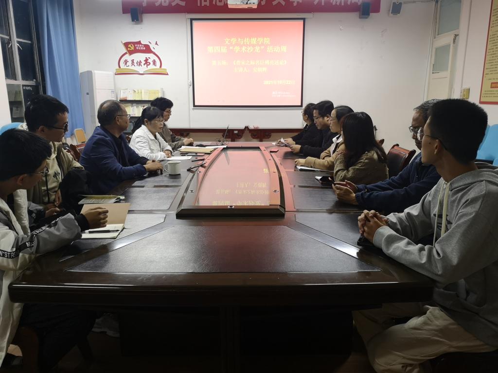 10月22日晚7:00,中国古代文学组在2307会议室,顺利举办了2138cc太阳集团官网入口第四届“学术沙龙”活动周的第五场学术沙龙活动。本场学术沙龙活动由安朝辉老师主讲,主题是“晋宋之际名臣傅亮述论”,孙鸿教授主持,学报编辑部主任杨明贵和学科组郑继猛教授、罗焕玉副教授 、王丽芳副教授、关满春老师、谭志轩老师以及部分员工参加了活动研讨。