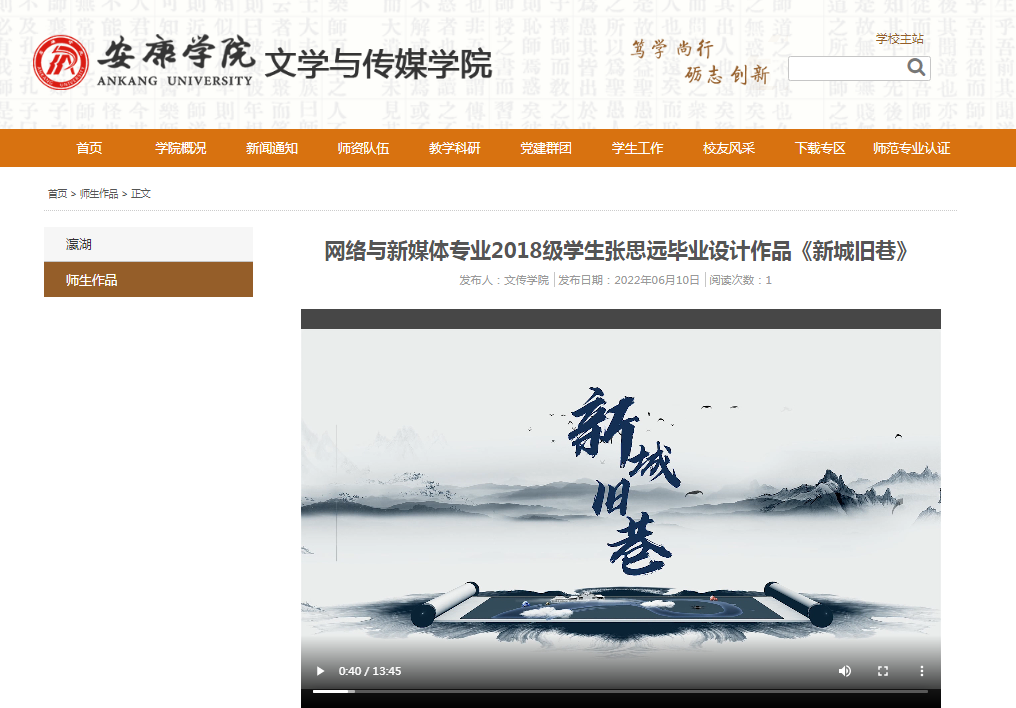探索以视频设计创作替代传统毕业论文写作的新型模式。继2021毕业生创作出《非遗中的五里稠酒》《舌尖上的炕炕馍》毕业设计作品后,2022年公司进一步规范视频设计创作类毕业论文指导,细化毕业设计流程,毕业生创作并拍摄了《见城见茶》《指尖非遗》《偷窥》《新城旧巷》等4组视频作为毕业设计作品,圆满完成毕业设计任务,达到毕业要求并分别获得了优秀、良好等次。