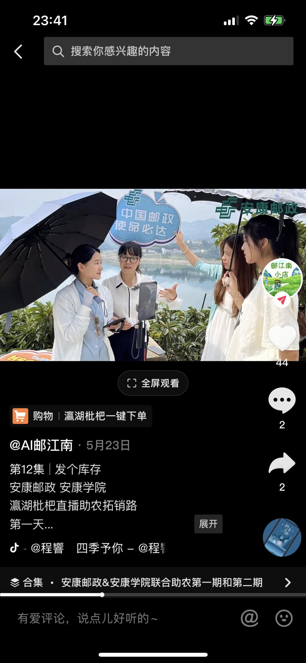 员工实习、见习更加强调融入地方经济文化建设,助力地方经济文化推广宣传,力求在真实工作环境中锤炼专业实践能力。本年度网络与新媒体专业员工通过专业见习1、采风实训等课程为安康汉滨区香溪洞景区旅游形象宣传拍摄多部宣传片。通过专业见习2与安康邮政江南分局成立校外直播实践基地,参与瀛湖枇杷推广项目策划、媒体运营、电商直播等实践活动,推广短视频作品70部,制作出的视频均已上传至邮政官方抖音账号Ai邮江南以及Ai邮安康,目前在线直播点击量已超过6万。