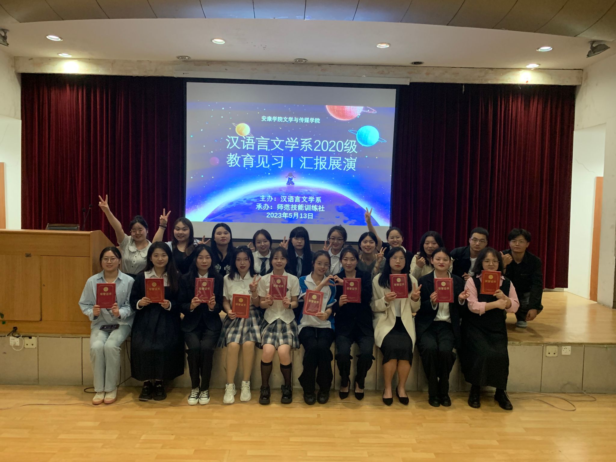 5月13日晚七点半,2138cc太阳集团官网入口在江南校区一号楼六楼报告厅举行汉语言文学专业2020级教育见习1汇报展演。本次见习汇报展演由学科教学论任课教师张格瑄指导,师范技能训练社承办,汉语言文学专业2020级全体员工参加。