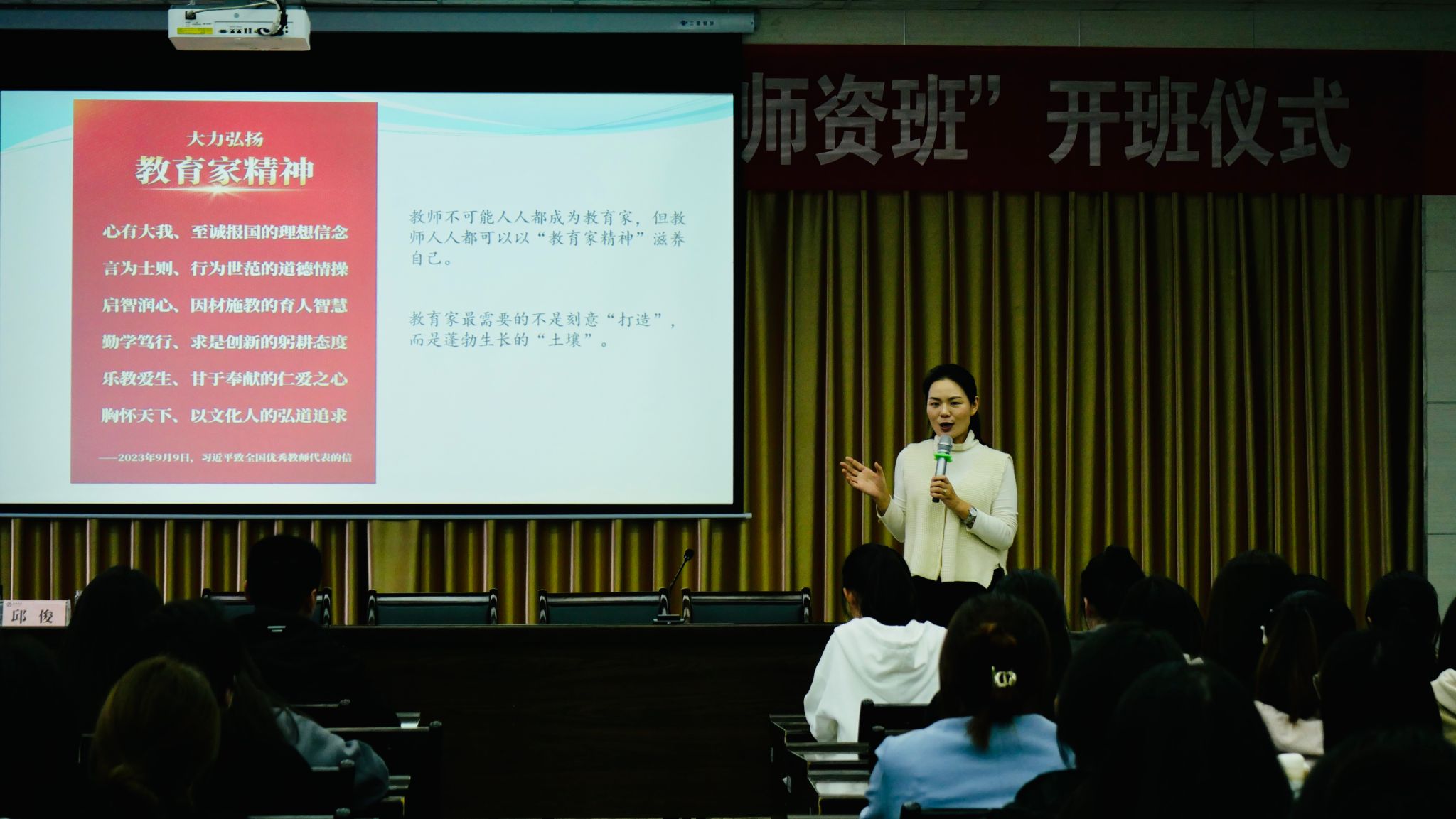 仪式结束后,陕西省教学名师、基础教育领军人才邱俊为第“中学语文卓越团队班”师生作了教师最好的精神长相”首场学术讲座