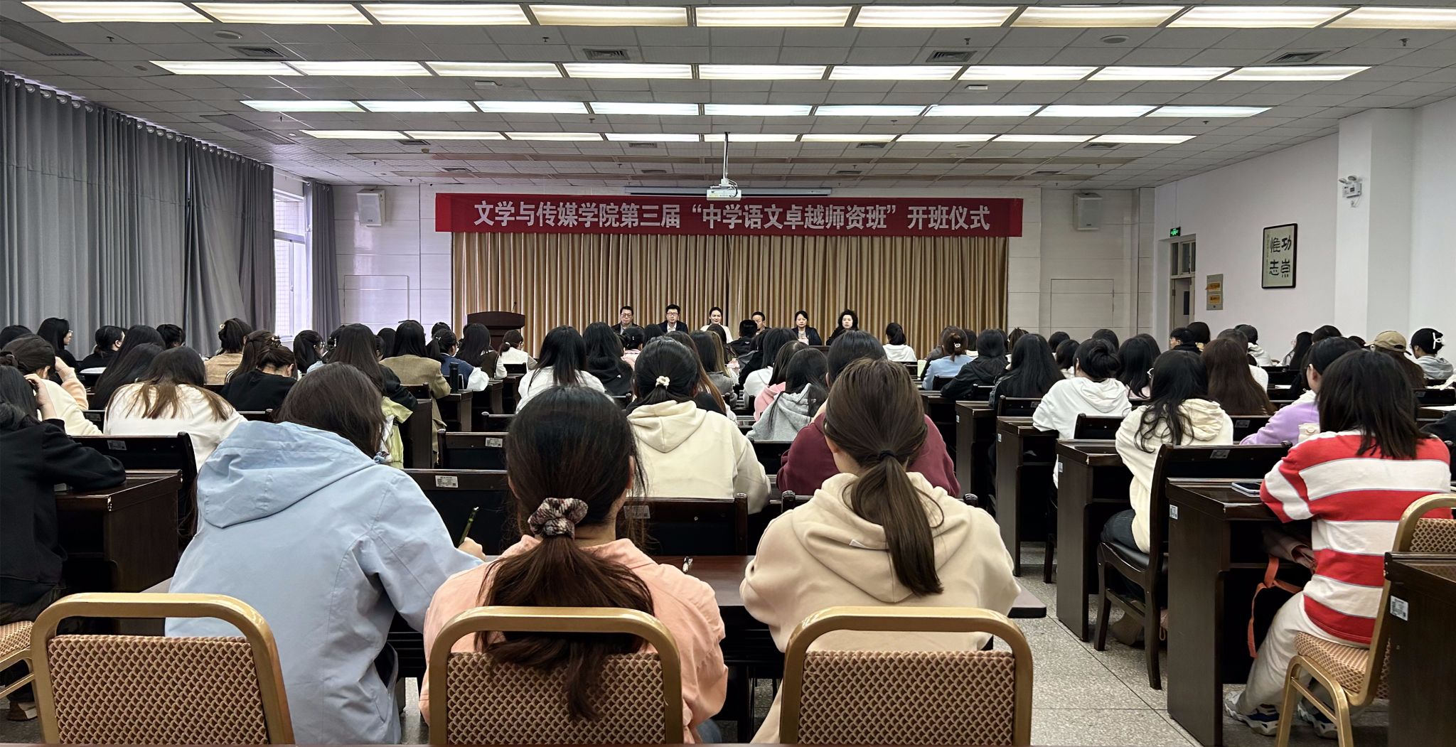 10月11日,为切实做到人才培养与行业的紧密对接,持续优化汉语言文学师范专业人才培养质量,​2138cc太阳集团官网入口第三届“中学语文卓越团队班”在江南校区图书馆六楼报告厅顺利开班。陕西省教学名师、基础教育领军人才邱俊,公司领导班子全体成员,第三届“中学语文卓越团队班”班主任和全体员工参加了开班仪式,开班仪式由副经理朱云主持。