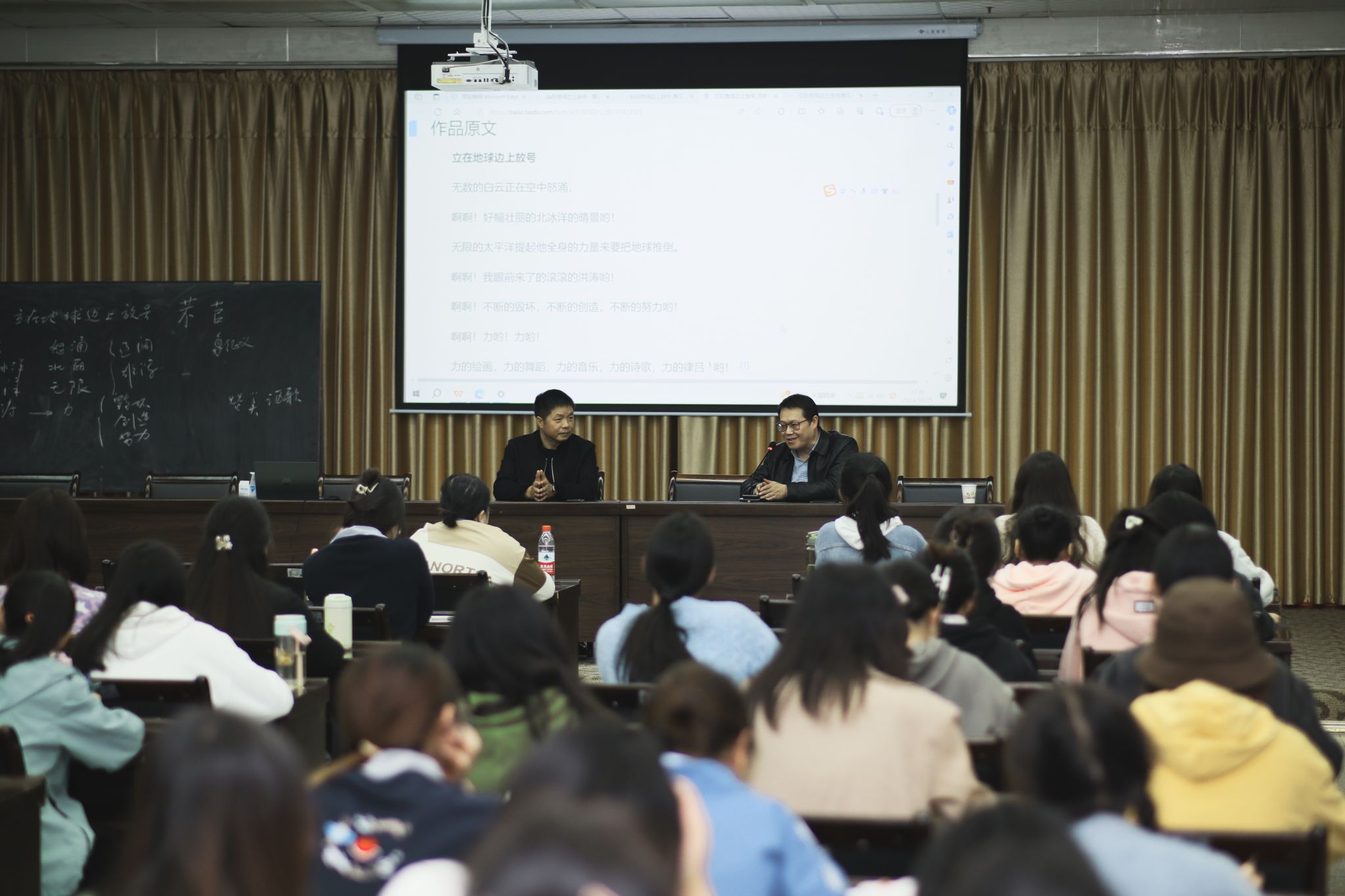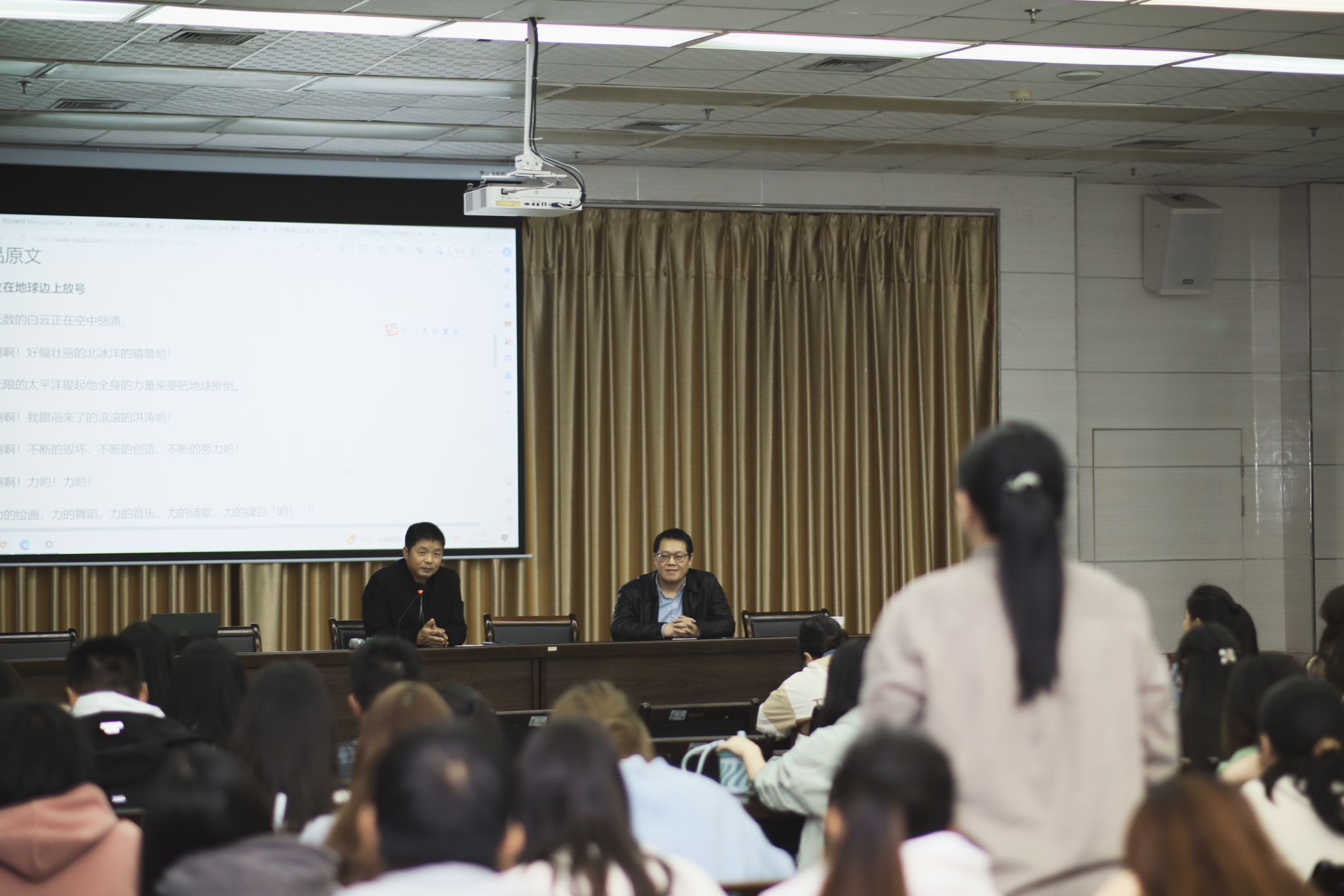 导航痕迹 首页 > 教学科研 > 教学活动 > 正文 专业建设 教学团队 教研教改 教学活动 科学研究 国际交流 第三届“中学语文卓越团队班”第二场讲座顺利举行 发布人:2138cc太阳集团官网入口 发布日期:2023年10月30日 阅读次数: 10月25日下午4点,省级教学名师张铁军应邀为公司第三届“中学语文卓越团队班”同学做了“《立在地球边上放号》教学展示与思考”学术讲座。本次活动在图书馆六楼报告厅举行,2138cc太阳集团官网入口副经理朱云、班主任张格瑄和第三届“中学语文卓越团队班”参加了报告会。 张铁军老师以《立在地球边上放号》一文为例,深入阐释了中学语文诗歌教学中存在的问题和应对策略。讲座后,同学们积极参与互动,就中学语文教学中的一些疑难问题与张老师进行了深入沟通和交流。 讲座最后,副经理朱云作了报告点评。他首先表达了对张老师讲座的感谢,认为讲座紧扣诗歌教学的特点,并贯穿了员工中心的教学理念,希望同学们结合相关课程学习,深入领会讲座的丰富内涵。 撰稿/张格瑄 摄影/潘宇(员工) 审核/朱云 发布/崔瑜