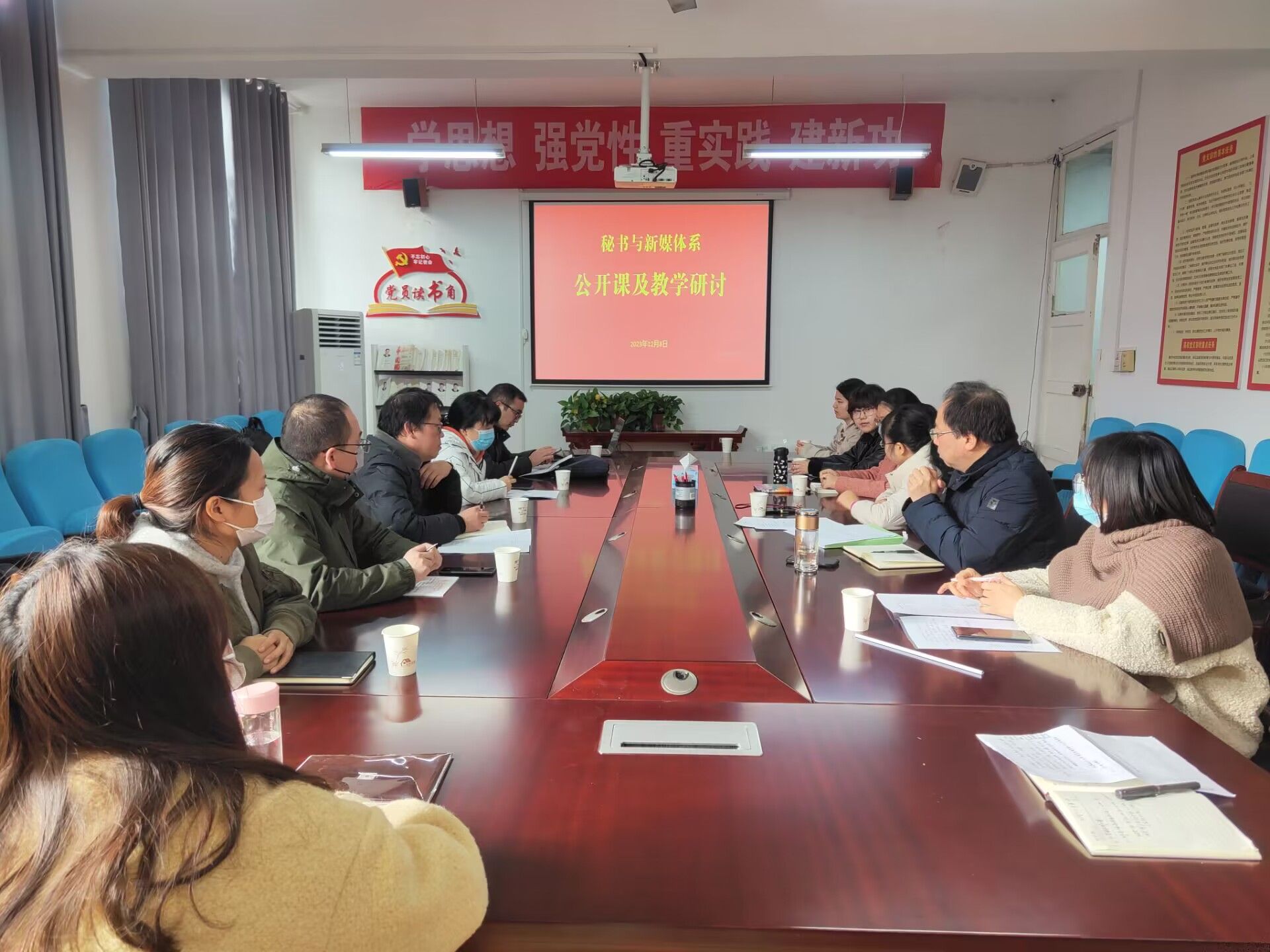 为促进教师间的教学研讨,提升青年教师的教学质量,12月8日上午,秘书与新媒体系举办了青年教师公开课及其研讨活动。活动由秘书与新媒体系主任谭诗民主持,公司领导、校院两级教学督导以及秘书学、网络与新媒体专业无课教师参加了该活动。