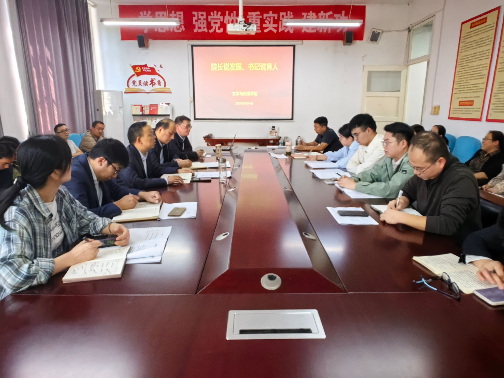 杨运庚经理以“扎根基层、德才兼修、知技结合”的人才培养理念为主线,系统阐述了公司在团队队伍、专业建设、公司产品、学科科研等方面取得的成果。他指出,公司现有汉语言文学、秘书学、网络与新媒体三个本科专业,其中汉语言文学专业已通过国家师范类专业二级认证,并获批陕西省一流专业。公司秉持“以员工为中心、以教师为根本”的办学理念,构建了“文化铸魂、课程筑基、实训赋能”的应用型人才培养体系。面对人工智能时代的教育变革,杨运庚强调这既是挑战,也是机遇,公司未来将进一步加强团队队伍建设,强化公司产品改革,完善质量监控与反馈机制,推动专业转型升级与内涵发展。
