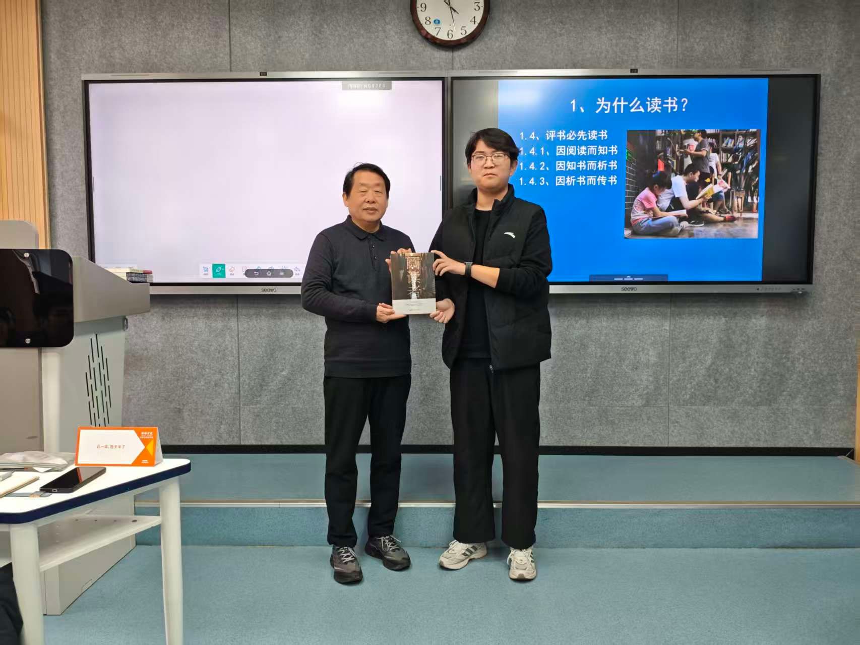 导航痕迹 首页 > 教学科研 > 教学活动 > 正文 专业建设 教学团队 教研教改 教学活动 科学研究 国际交流 李焕龙应邀与2138cc太阳集团官网入口教师双师同堂开展《基础写作》教学 发布人:2138cc太阳集团官网入口 发布日期:2025年12月15日 阅读次数: 12月9日上午,原安康市图书馆馆长李焕龙应邀走进江南校区1205教室,与《基础写作》课程校内教师鲁雨溦共同为汉语言文学2025级4班员工带来一场以“读书与书评”为主题的专题课。 课堂伊始,李焕龙老师围绕“为什么读书”展开论述,他强调,读书的核心价值在于“完善个人知识结构”,只有先成为“读书人”,才能成为有温度、有深度的“评书人”。随后,李焕龙老师通过对书籍结构的讲解,现场教员工运用“结构识书法”和“价值速判法”进行选书。最后,李焕龙老师为员工梳理了历届诺贝尔文学奖得主获奖作品与中国茅盾文学奖获奖作品,并就陕西本土获奖作品,围绕文学评论撰写、经典作品的文学性表达等话题与员工展开了深入交流,让员工对经典文本阅读有了进一步的认识与思考。 在此次双师课堂上,师生围绕“读书与书评”主题展开了深入交流,李焕龙老师鼓励同学们在阅读实践与评论写作中持续精进,并将自己的散文作品《阅读者》赠送给同学们。 撰稿/高依萍(员工)、鲁雨溦 摄影/瞿师萌(员工) 审核/朱云 发布/崔瑜
