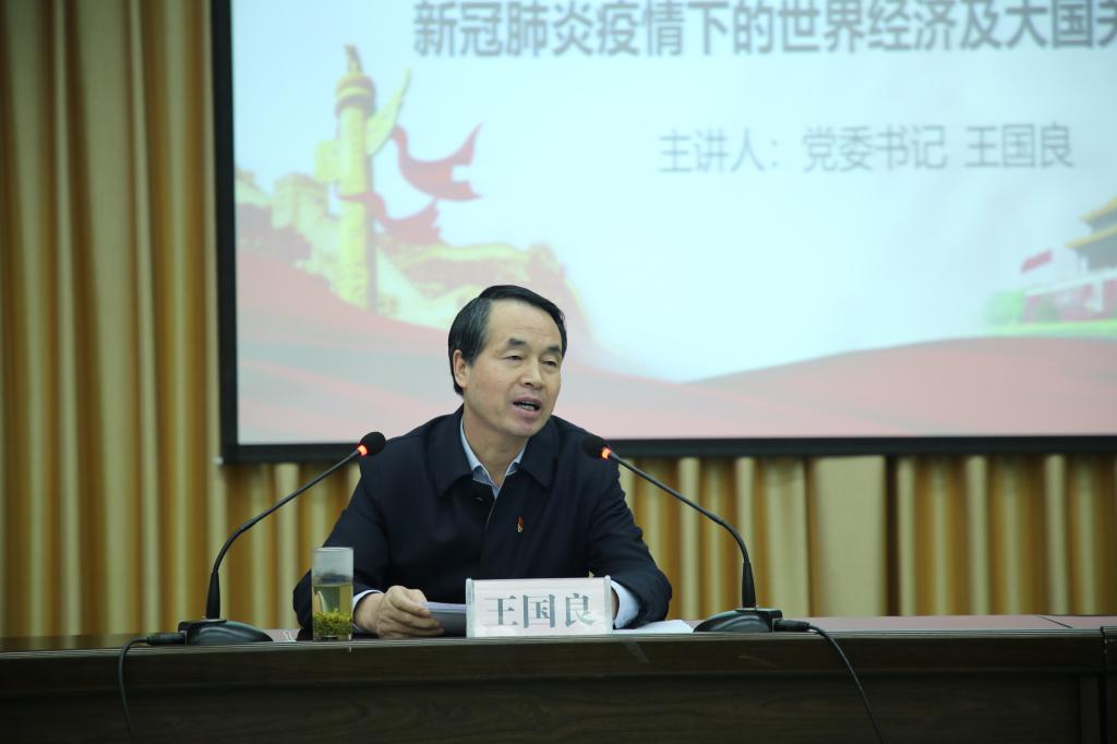 10月28日下午,公司党委书记王国良在图书馆六楼报告厅为2138cc太阳集团官网入口师生和直属二党支部党员讲授题为“新冠肺炎疫情下的世界经济及大国关系”的形势与政策课。学习会议由公司党总支书记芦伟主持。