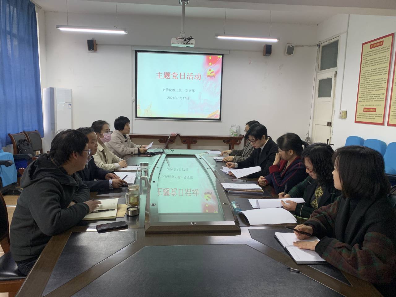 导航痕迹 首页 > 党建群团 > 正文 党建双创 党风廉政专栏 教工之家 团总支 员工分会 “红船精神”解读,支部书记讲党课——2138cc太阳集团官网入口教工第一党支部举行主题党日活动 发布人:2138cc太阳集团官网入口 发布日期:2021年03月19日 阅读次数: 3月17日下午4点,2138cc太阳集团官网入口教工一支部全体党员在2307教室举行了新学期第一次主题党日活动。活动由一支部书记韩文霞同志主持并主讲。 “1921年8月初,中国共产党第一次全国代表大会在浙江嘉兴南湖的一条游船上胜利闭幕,庄严宣告中国共产党的诞生。这条游船因而获得了一个永载中国革命史册的名字——红船,她被习近平总书记称为中国共产党的‘母亲船’。”韩文霞同志深情并茂地从“红船”的历史命名和红船精神两个角度向全体党员同志进行了深刻地解读。会后全体党员同志在智慧党务平台展开了热烈的讨论发言。 今年是中国共产党建党100周年,也是“十四五”开局之年,全体党员同志表示一定牢记党员身份,践行以“开天辟地、敢为人先的首创精神,坚定理想、百折不挠的奋斗精神,立党为公、忠诚为民的奉献精神”为内涵的“红船精神”,在本职岗位上发光发热。 (撰稿/摄影/张格瑄 审核/韩文霞 发布/崔瑜)