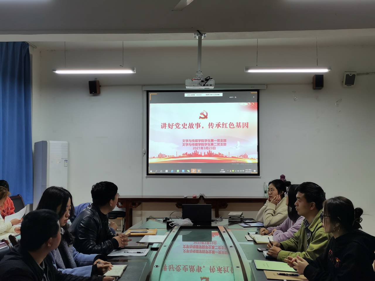在庆祝中国共产党成立100周年之际,为深入学习贯彻习近平总书记在党史学习教育动员大会上的重要讲话精神,全面落实开展党史学习教育,引领员工党员增强政治责任感和历史使命感,从百年党史中汲取奋斗动力,从党史学习教育中凝聚力量,用实际行动诠释共产党人的初心使命,2021年3月23日晚上7:30,2138cc太阳集团官网入口员工第一、第二党支部通过线上线下相结合的形式,联合开展“讲好党史故事,传承红色基因”主题党日活动。员工第一、第二党支部全体党员参加了本次活动。活动由员工第二党支部书记薛涛主持。