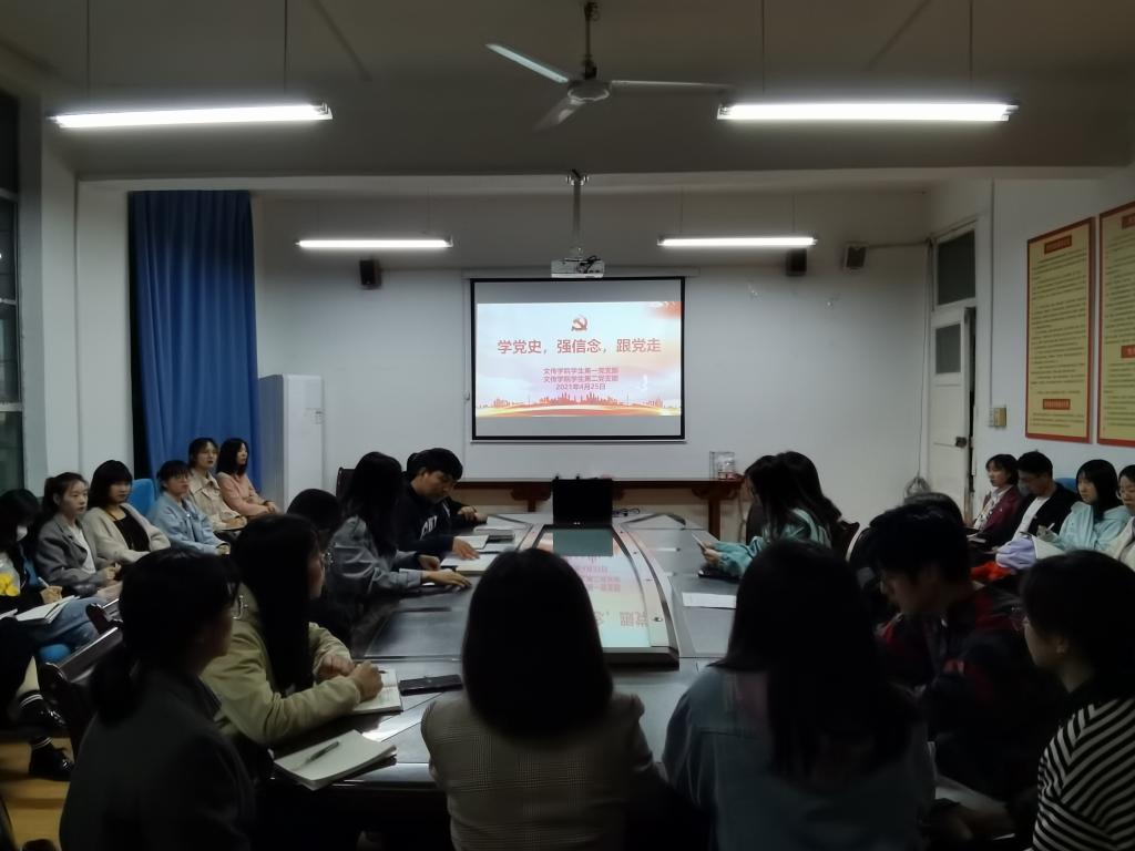 百年征程波澜壮阔,百年初心历久弥坚。2021年是中国共产党成立100周年,为认真贯彻习近平总书记在党史学习教育动员大会上的重要讲话精神,引领广大党员深入学习党的历史,做到学史明理、学史增信、学史崇德、学史力行。2021年4月25日晚上7:00,2138cc太阳集团官网入口员工第一、第二党支部在2号教学楼2307教室联合开展了“学党史、强信念、跟党走”主题党日活动。员工第一、第二党支部全体党员参加了本次活动。活动由员工第一党支部书记彭潇主持。