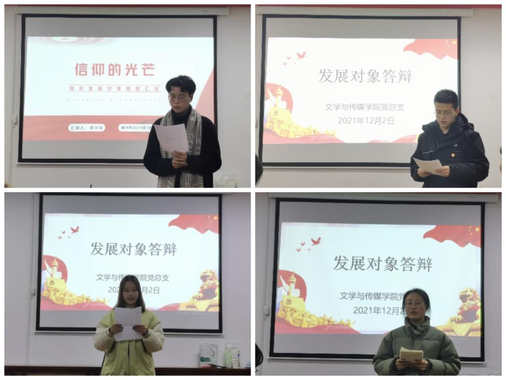 答辩同学分别从入党动机、对党的认识、思想汇报、学习工作等方面进行阐述。答辩组老师从党的理论知识、入党动机、对党的纲领政策的认知,以及个人成长等方面进行提问,同学们应答思路清晰,内容准确,充分体现了党组织对发展对象的教育培养实效。