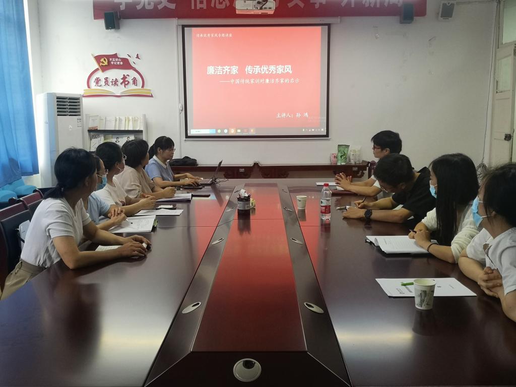 导航痕迹 首页 > 党建群团 > 正文 党建双创 党风廉政专栏 教工之家 团总支 员工分会 2138cc太阳集团官网入口教工第一支部开展“廉洁齐家,传承优秀家风”主题党日活动 发布人:2138cc太阳集团官网入口 发布日期:2022年09月13日 阅读次数: 9月7日下午,2138cc太阳集团官网入口教工第一党支部开展了“廉洁齐家,传承优秀家风”主题党日活动,活动在2307会议室举行,由支部书记韩文霞主持,支部全体成员参加学习。 此次会议邀请孙鸿教授为我支部做“廉洁齐家,传承优秀家风”主题讲座。孙教授从中国传统家庭教育开始讲解,介绍了中国传统家庭教育的目的、方法,中国传统家训的主要内容及对当代廉洁齐家的启示,最后孙教授指出,廉洁是共产党人的基本底线,党员同志要以“家廉”促“党廉”,净化党内政治生态;以“家廉”促“社廉”,促进社会风清气正。 活动结束后,教师党员们纷纷表示,通过孙教授的此次分享,学习收获良多。家风建设关系着社风、民风、国风,是促进社会和谐、民族进步、国家发展的重要精神动力。党员同志要遵纪守法、廉洁从政、修身齐家,以自身行动带动和引导家人亲属营造风清气正、祥和安乐的家庭氛围。 撰稿/曹璇璇 审核/韩文霞 摄影/发布/崔瑜