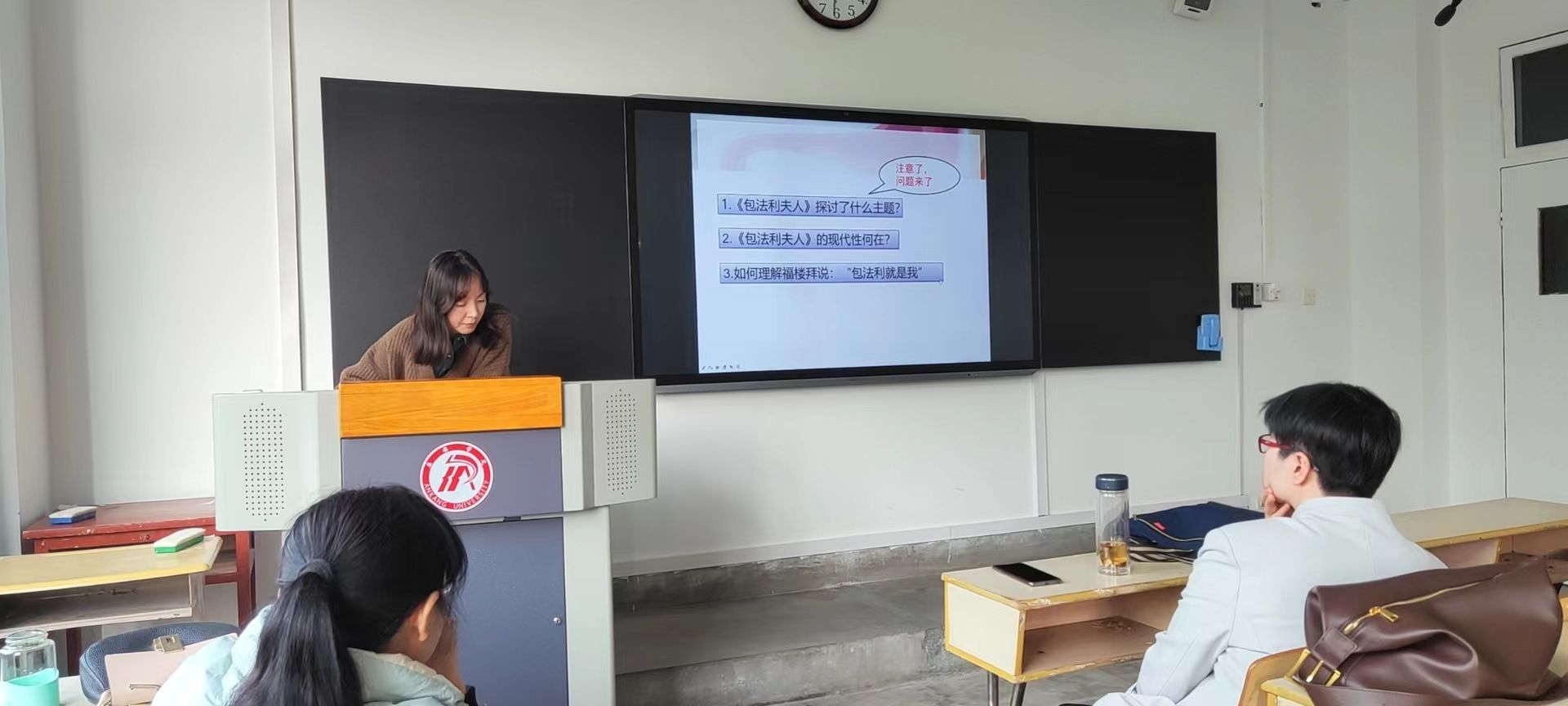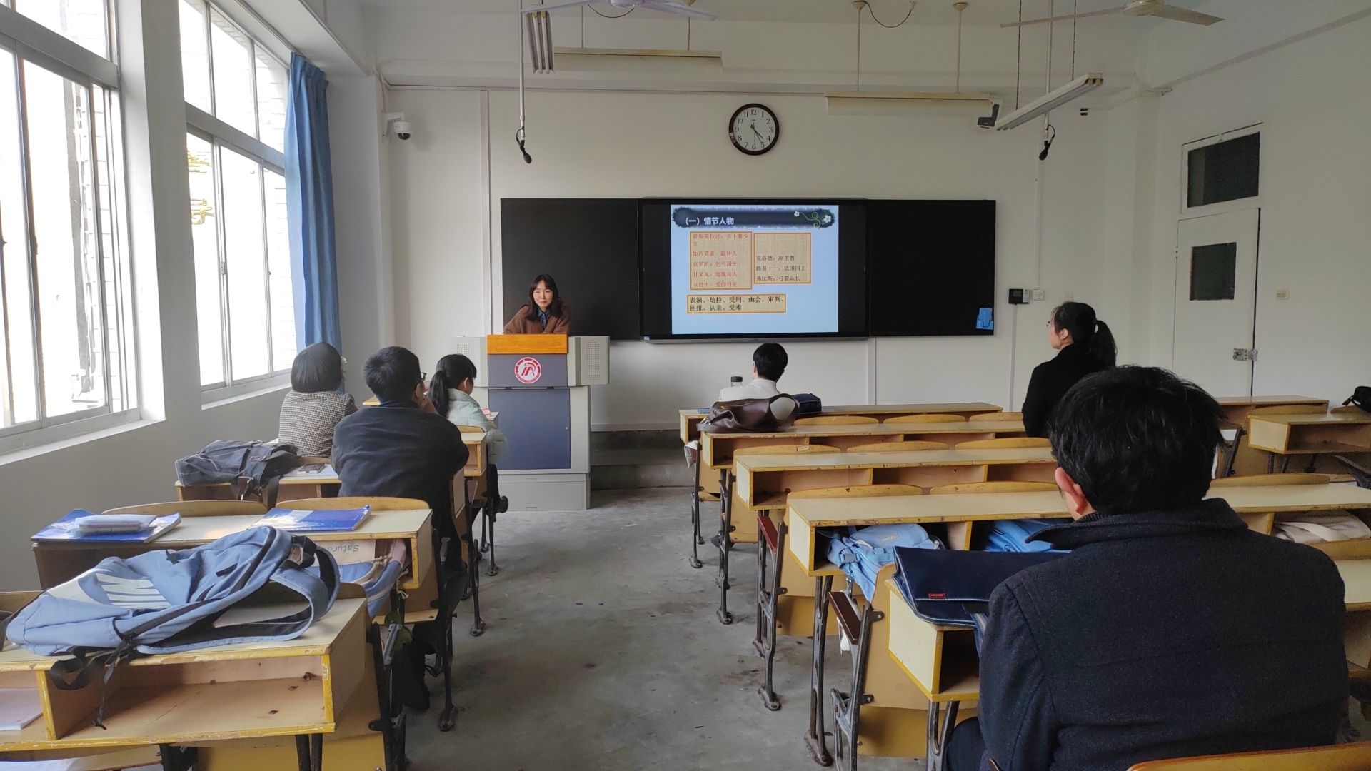 沙龙活动由教工二党支部书记邸玲和秘书与网络新媒体系主任谭诗民共同指导,邸玲带头进行课改示范教学,院系教学督导孙鸿、省级课程思政示范课程“古代汉语”教师周海霞受邀进行现场示范指导,并就如何在教学设计的每个环节落实“员工中心”的师范专业认证理念如何利用学堂在线、学习通、慕课堂等信息技术平台实现线上线下混合式教学,如何提升课件制作水平,如何进行课程思政问题与参会教师进行分享。出席沙龙活动的教师们进行了热烈的讨论交流,纷纷表示通过现场观摩学习,受益匪浅。