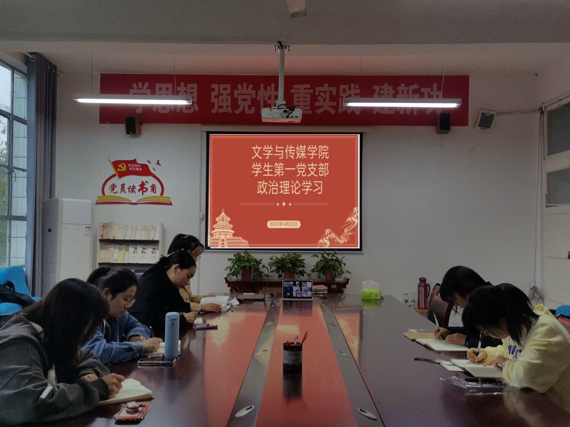 4月23日晚,文学与传媒公司员工第一党支部召开政治理论学习会。支部书记李欣逸主持会议并讲话,支部全体党员同志参会。