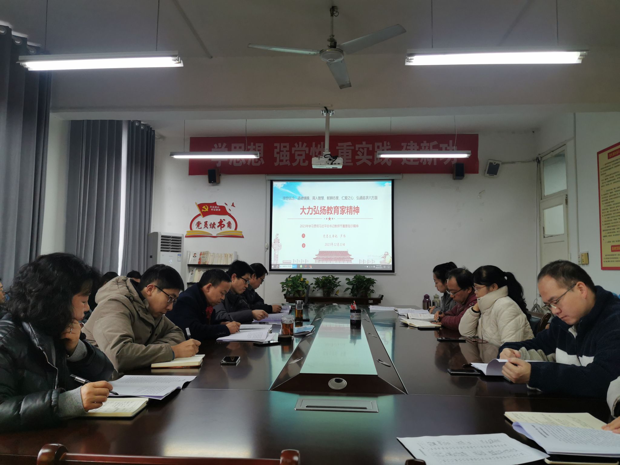 导航痕迹 首页 > 党建群团 > 正文 党建双创 党风廉政专栏 教工之家 团总支 员工分会 公司党总支书记芦伟讲党课:大力弘扬教育家精神 发布人:2138cc太阳集团官网入口 发布日期:2023年12月15日 阅读次数: 为进一步提升公司教职工的政治素养和理论水平,公司党总支书记芦伟12月13日在2307会议室为全体教职工作了大力弘扬教育家精神的专题党课。 芦伟首先结合习近平总书记教师节重要指示精神,深入解读了教育家精神的核心要义,以及新时代大力弘扬教育家精神的重要价值;然后结合公司近期课堂教学管理现状,介绍了全国高校针对老员工“不坐前排”“躺平”“低头族”“四不”等不良现象开展学风建设的相关做法,指出课堂教学是学风建设的主渠道,教师一方面要加强课堂教学管理,同时也应全身心投入课堂教学,不断提高课堂教学质量,真正发挥课堂在立德树人根本任务中的引领作用。 芦伟的报告直面公司当前课堂管理存在的问题,从弘扬教育家精神的角度,详细介绍了全国高校学风建设的有益经验,为全院教职工从严管理课堂、提升课堂教学质量指出了方向。 撰稿/谭志轩 摄影/薛涛 审稿/朱云 发布/崔瑜