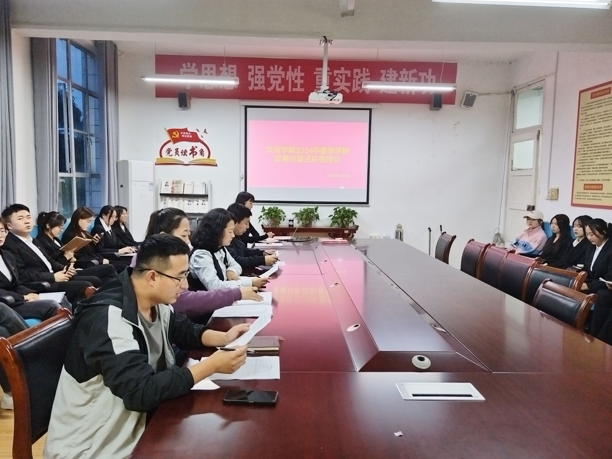 答辩会上,参加答辩的积极分子们依次从思想认识、学习成果、现实表现等方面进行个人陈述。展示自己在培养期间的成长和进步,陈述对党的理论知识的理解认知。