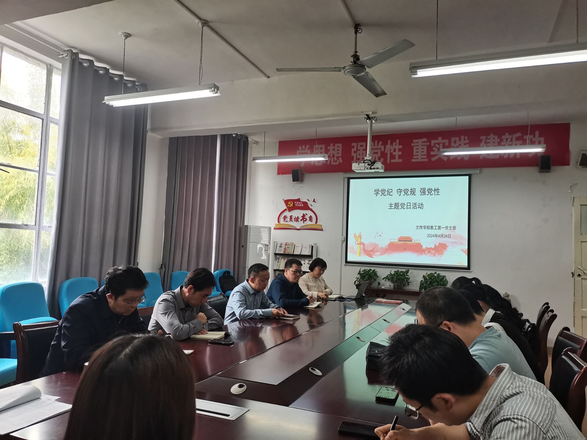 为深入贯彻落实全面从严治党要求,进一步提高党员遵规守纪的自觉性,以党纪学习教育强基固本,推动党员教师的思想自觉和行动自觉,做到内化于心、外化于行,4月24日下午,2138cc太阳集团官网入口教工第一支部组织全体党员开展“学党纪、守党规、强党性”四月主题党日活动,活动在2307会议室举行,由支部书记韩文霞主持。