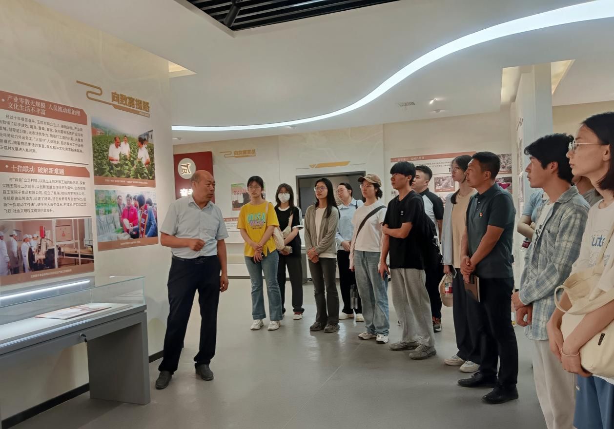 活动中,师生们参观了王院村党群服务中心和村史馆,通过图文展板、实物陈列,深入了解该村从贫困山村到“全国文明村”的蝶变历程,学习陈分新带领村民修路、引水、发展产业的感人事迹。深切感受党建引领下基层党组织对乡村发展的“主心骨”作用;踏入乡村振兴学堂、反邪教警示教育基地,通过历史物件、真实案例体会文化铸魂厚植的乡村振兴“软实力”。