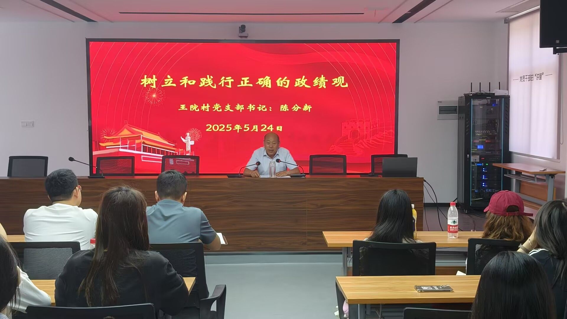 参观结束后,特别邀请陈分新同志为师生们讲授“树立和践行正确的政绩观”专题党课,他结合自身经历,从理论层面深化对乡村振兴战略的理解,围绕“以人民为中心”的发展思想,结合乡村发展实际,阐述了政绩观与乡村振兴目标的内在联系,引导师生在实践中坚守“功成不必在我,功成必定有我”的信念。