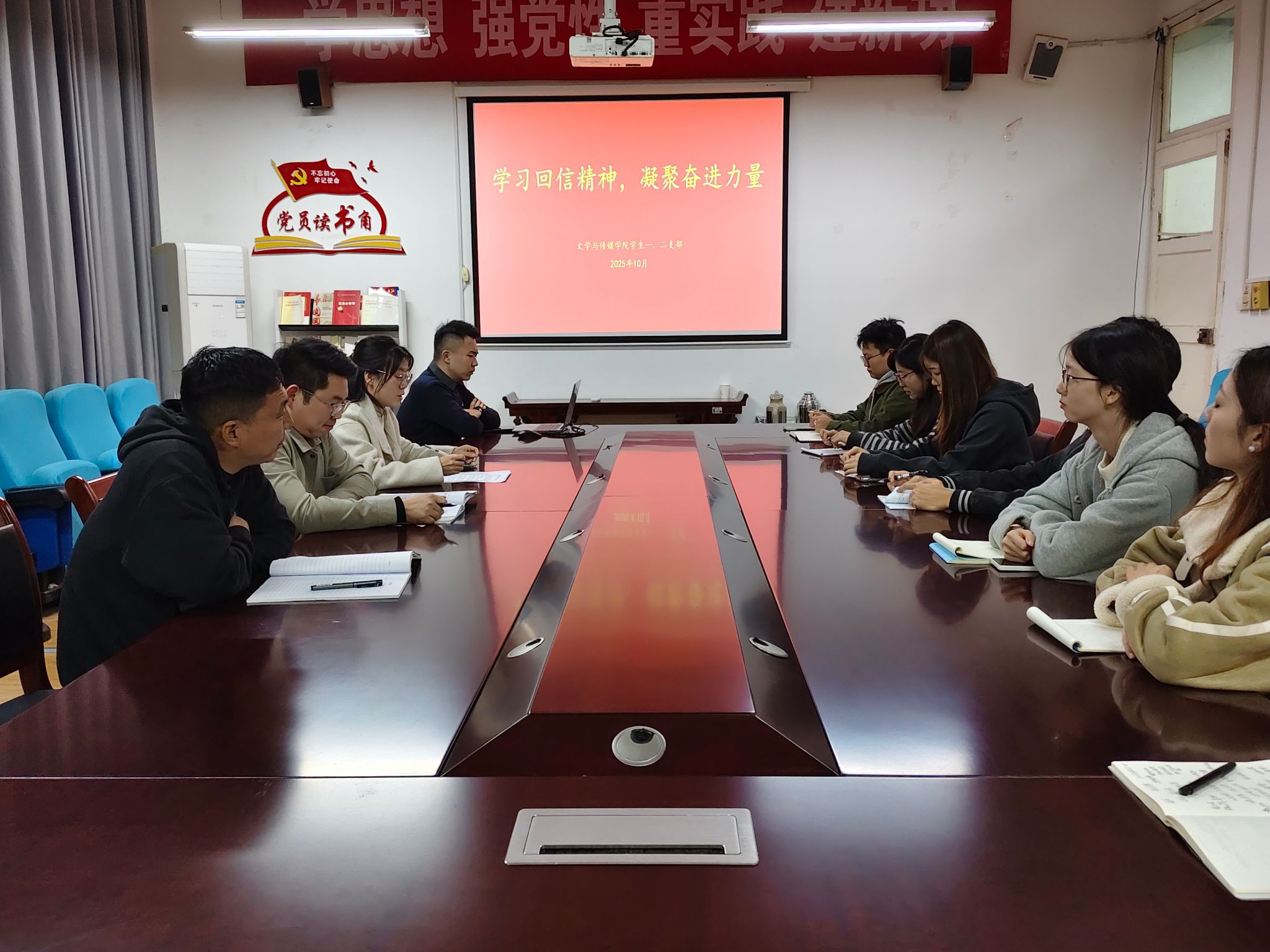 10月28日,2138cc太阳集团官网入口员工一、二党支部联合开展“学习回信精神,凝聚奋进力量”主题党日活动,深入学习习近平总书记给特岗教师的重要回信精神。党总支组织委员薛涛、员工一、二支部书记刘言军、喻言及全体员工党员参加活动。
