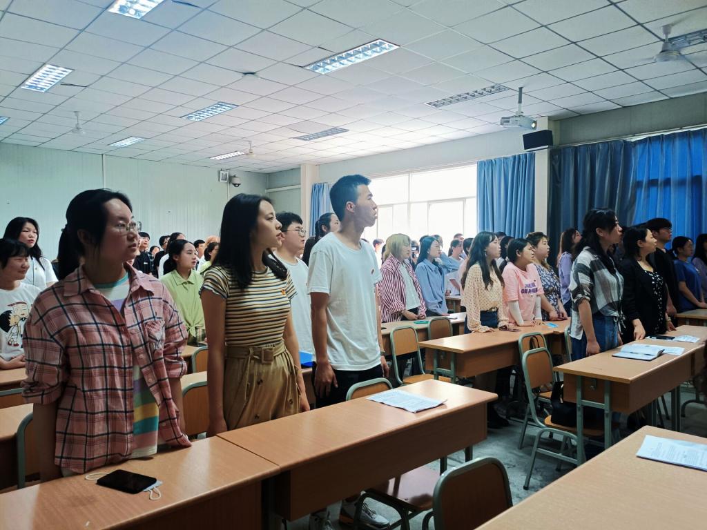 伴着激动的心情,师生返回集团,在江南校区1026室进行本次活动的第二阶段:入团宣誓仪式暨主题团课。第二阶段活动由汉语言文学专业2019级1班路怡鸿同学主持。