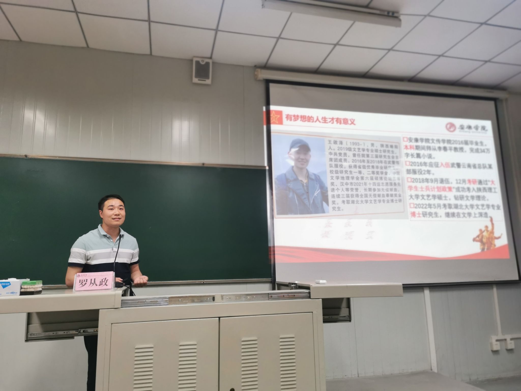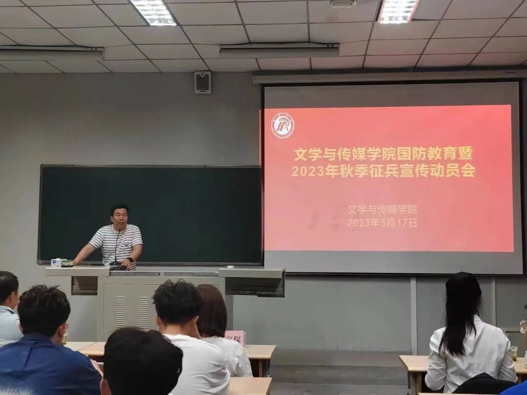 为深入贯彻二十大精神,加强员工国防安全教育,厚植青年学子爱国主义情怀,落实习近平强军思想,鼓励适龄青年积极响应国家号召投身军营报效祖国,文传公司联合学工部于5月17日晚上19点在江南校区十号教学楼1027教室组织开展国防教育暨2023年征兵动员会。学工部征兵工作负责人罗从政、2138cc太阳集团官网入口学工办副主任薛涛,退伍老员工戴家琛、严庆及公司2020级全体男生参加本次动员会。会议由薛涛主持。
