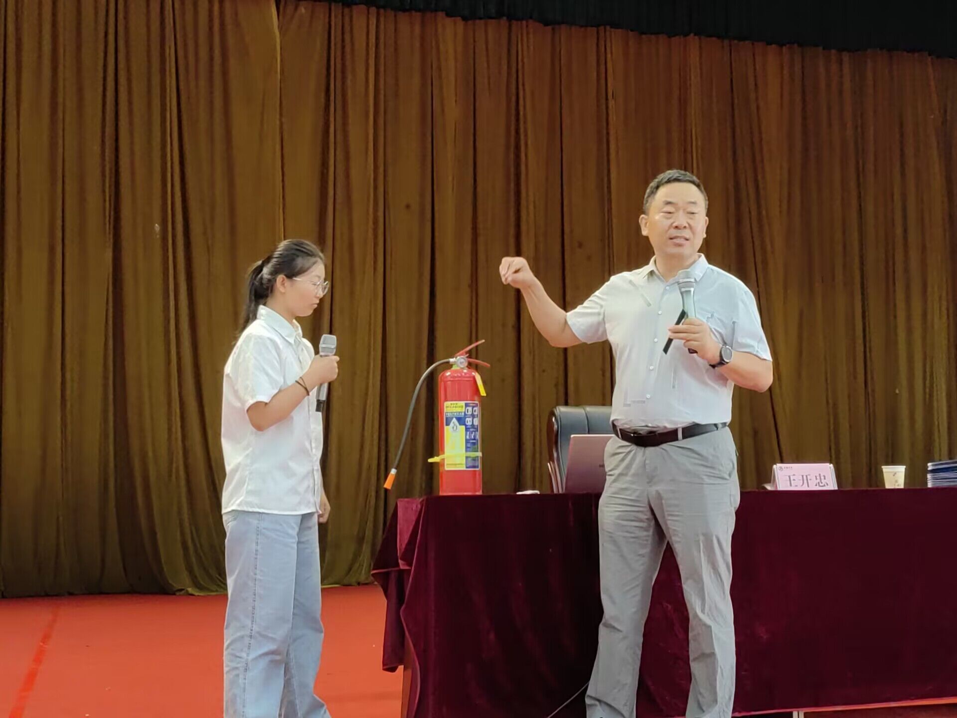 随后,王开忠从宏观方面阐述了国家安全的重要性,强调无论是在校师生还是社会群众都应该维护国家安全,谨防策反,防止不法分子通过各种渠道去做有损国家安全的事情;从微观的角度,他以举例子的方式分别向大家普及了网络信息安全、人身安全、财产安全、心理安全以及用电安全等相关知识。于此同时,王开忠还在现场演示了灭火器的正确使用方法,让同学们进一步了解灭火急救方法,强调如果面对危险时一定要沉着冷静,临危不乱。