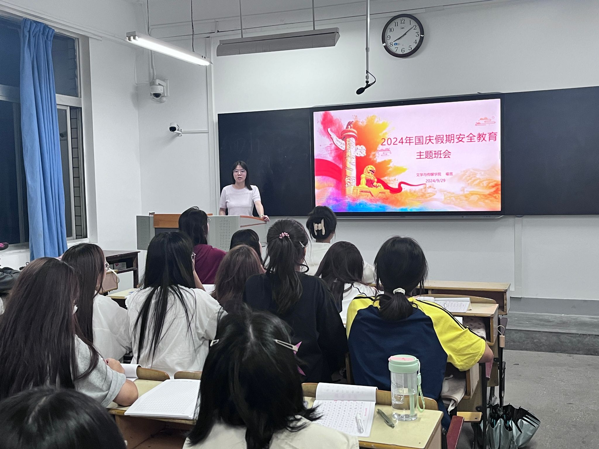 临近假期,辅导员老师们着重强调了国庆节期间的安全注意事项。包括交通安全,提醒同学们在出行时遵守交通规则;人身安全,告知同学们要远离危险区域,避免发生意外;财产安全,叮嘱同学们增强防范意识,警惕各类诈骗。要求同学们坚决维护国家政治安全、制度安全、意识形态安全,树立维护国家安全的自觉意识,欢度稳定祥和的国庆假期。