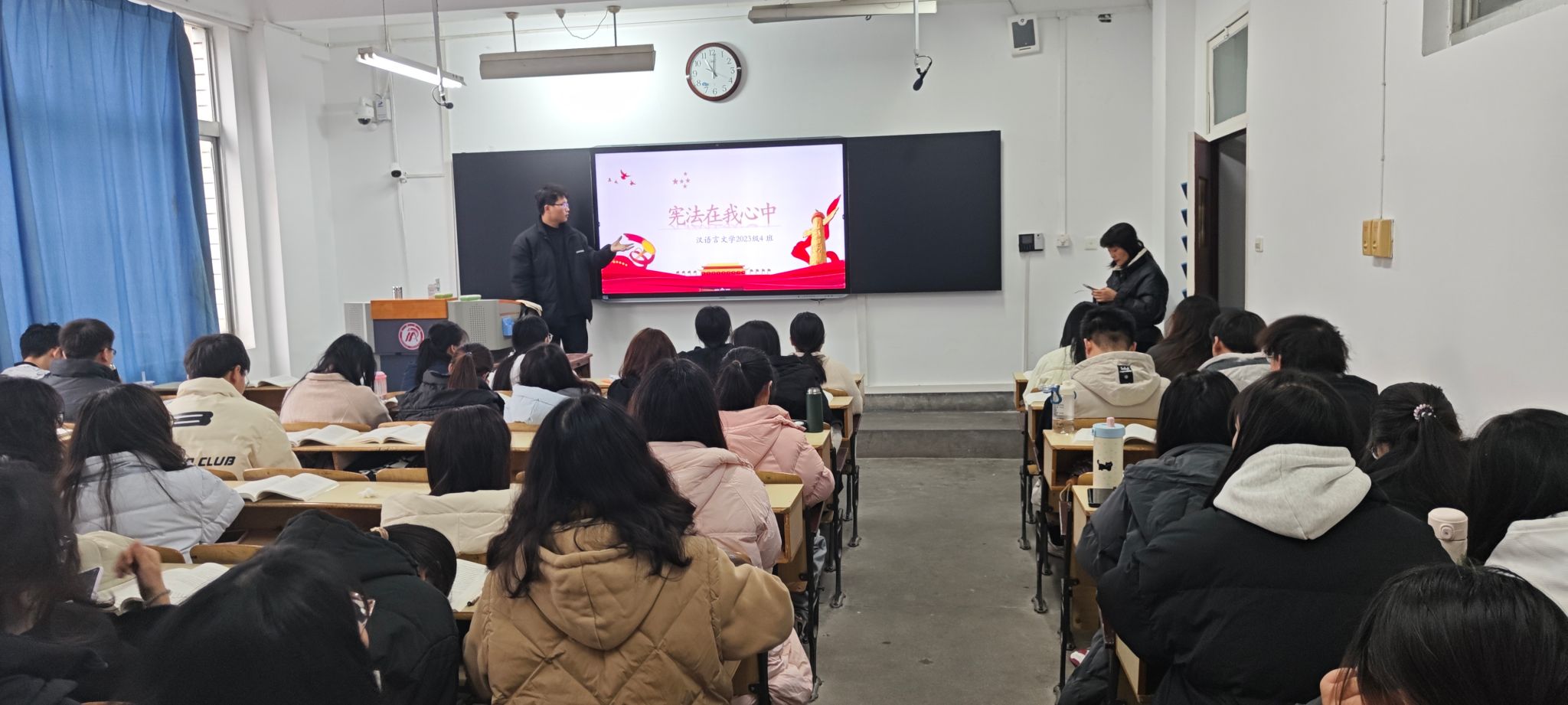 各年级辅导员向同学们普及宪法作为国家根本大法,与每个公民息息相关。各班在班干部的带领下,全体同学庄重而严肃地诵读《中华人民共和国宪法》部分章节,同学们在诵读过程中深刻感受宪法的庄严与神圣。诵读后,同学们分享自己的学习感悟,通过诵读对宪法赋予公民的权利和义务有了更加清晰的认识,明白了在日常生活中要自觉遵守宪法,依法行使权利,积极履行义务。同学通过学习也深刻意识到宪法是维护社会公平正义的基石,作为新时代的青年员工,要积极传播宪法知识,弘扬宪法精神,为建设法治社会贡献自己的力量。