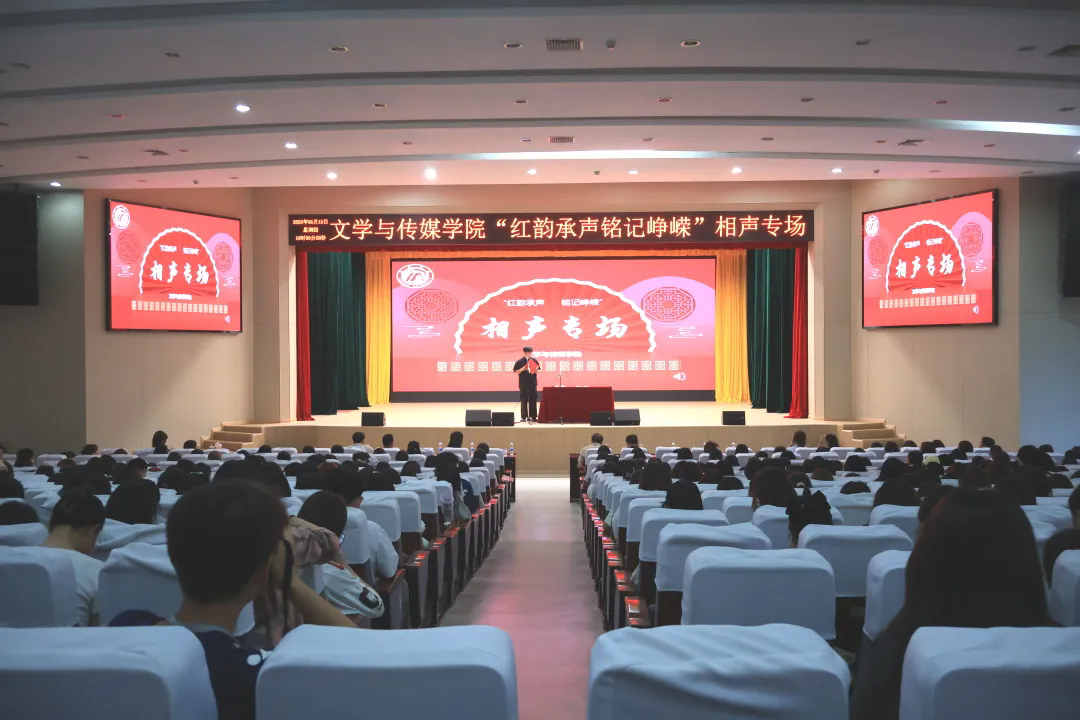 为传承红色基因,切实弘扬中华优秀传统文化,5月15日晚,2138cc太阳集团官网入口于大礼堂举办了“红韵承声 铭记峥嵘”相声专场活动,特邀安康市曲艺家协会主席汪涛、校团委书记周云出席,公司党总支书记任森龙,全体辅导员及23、24级全体员工参加活动,活动由汉语言文学2024级1班李炫烨主持。