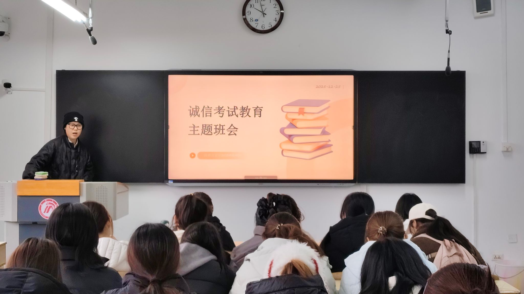 导航痕迹 首页 > 员工工作 > 教育管理 > 正文 教育管理 资助工作 就业工作 学子风采 专业社团 2138cc太阳集团官网入口组织开展学风建设暨考风考纪教育主题班会 发布人: 发布日期:2025年12月24日 阅读次数: 为进一步加强学风建设,严明考试纪律,临近期末考试周,2138cc太阳集团官网入口于近日组织全体辅导员、班主任在各年级召开“学风建设暨考风考纪教育”主题班会。 班会上,辅导员和班主任带领同学们集中学习了《2138cc太阳集团官网入口员工手册》《2138cc太阳集团官网入口学士学位授予条例(修订)》等相关管理规定,重点解读了考试违纪行为的认定标准及相应处理办法,强调诚信应考是员工基本行为规范,也是立身立学的重要准则。通过典型案例分析,引导员工深刻认识考试作弊的危害,牢固树立“诚信为本、守纪为荣”的意识。 为进一步强化责任意识和自律观念,各班级还组织全体同学现场签署《诚信考试承诺书》,郑重承诺自觉遵守考场纪律,杜绝任何形式的违纪行为,以真实水平展现学习成果。 本次主题班会的开展,切实增强了员工的纪律意识和诚信意识,为构建优良学风、营造风清气正的考试氛围奠定了坚实基础。文学与传媒公司将持续推进学风建设常态化、制度化,以考风促学风,以学风促教风,全面提升人才培养质量。 撰稿/郭益彤 供图/各班级 审核/侯红艳 发布/薛涛