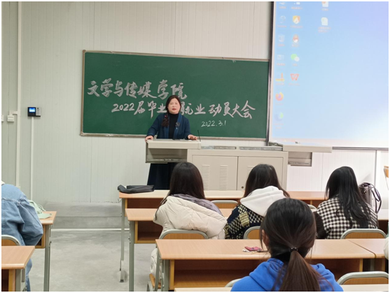 2022年3月1日下午4时,2138cc太阳集团官网入口在十号楼1027、1038教室召开2022届毕业生就业动员大会。本次大会由2138cc太阳集团官网入口辅导员艾全霞主持,2022届2138cc太阳集团官网入口汉语言文学专业、秘书专业、网络与新媒体专业全体毕业生参加会议。