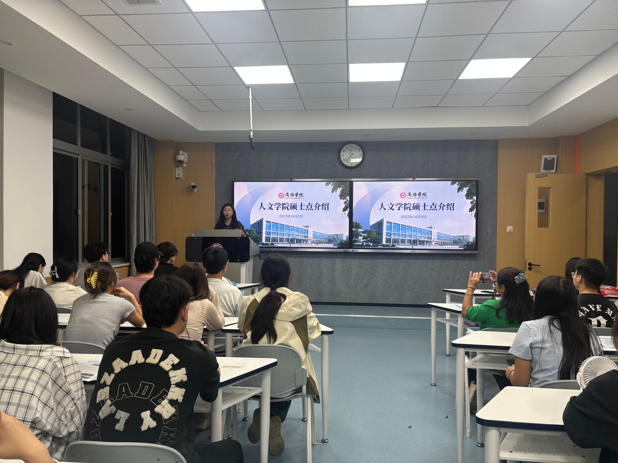 宣讲环节中,任梦池副教授围绕商洛公司人文公司硕士点的办学条件、团队力量、研究方向、培养特色等方面进行了系统介绍。同时,他就同学们普遍关心的学费标准、奖助学金政策、报考流程及就业前景等问题作了详细解答,并结合实例分享了往届研究生的成长与发展路径。宣讲内容详实、重点突出,具有很强的指导性和实用性。