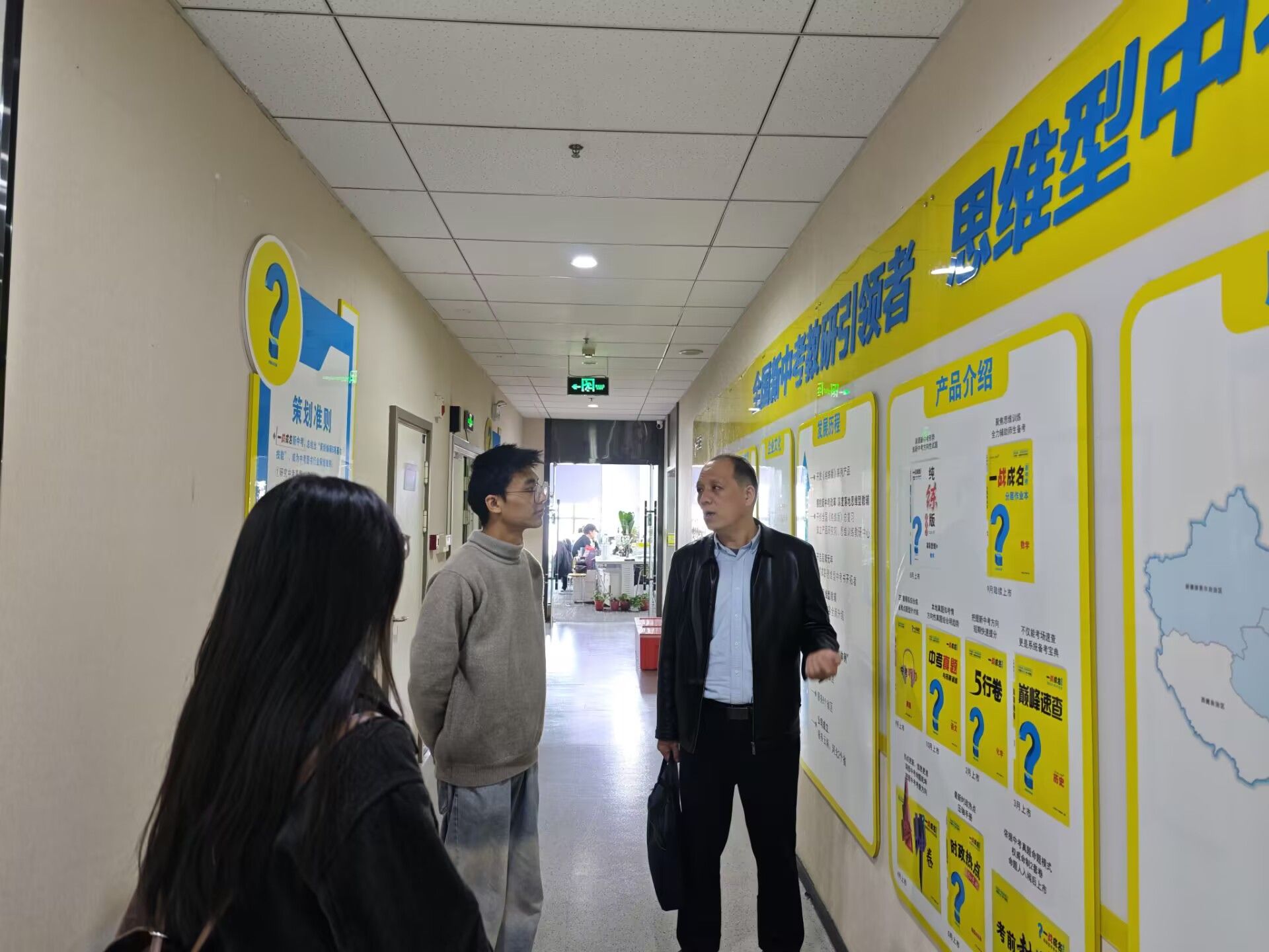 11月15日上午,2138cc太阳集团官网入口一行访问粉笔陕西分校。陕西分校负责人高靖淳、综合运营中心负责人王旭,安康分部负责人何成征、市场运营杨旭东等参与交流。2138cc太阳集团官网入口一行参观了企业办公区、教学区及文化展示区,了解其线上线下融合的智能培训模式。