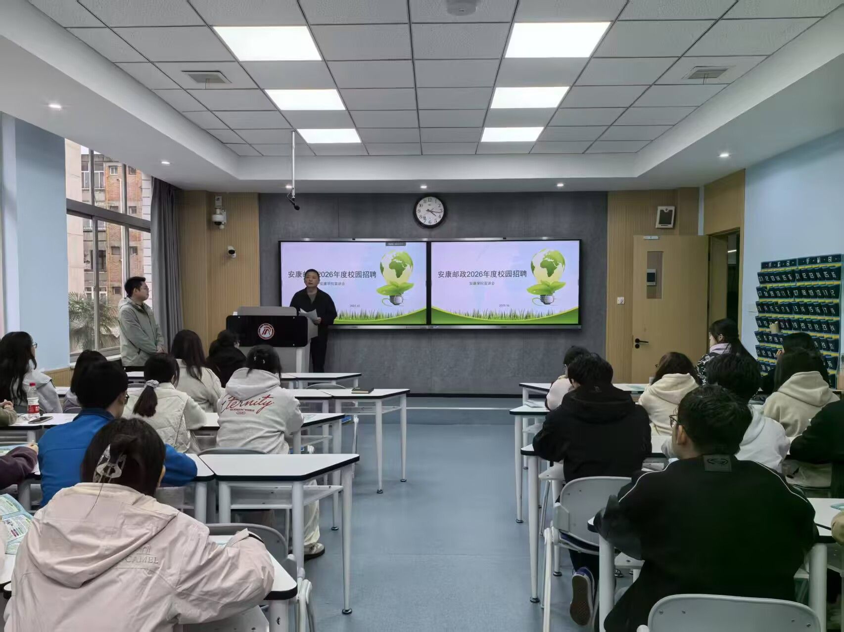 导航痕迹 首页 > 员工工作 > 就业工作 > 正文 教育管理 资助工作 就业工作 学子风采 专业社团 2138cc太阳集团官网入口举办陕西邮政2026届校园招聘宣讲会 发布人: 发布日期:2025年10月24日 阅读次数: 为帮助员工精准对接就业资源,10月23日,2138cc太阳集团官网入口在1205教室举办陕西邮政2026届校园招聘宣讲会。宣讲会由安康邮政分公司人力资源部喻玺担任主讲,辅导员刘言军主持,毕业生辅导员彭潇及部分毕业生参加。 喻玺系统全面地介绍了邮政安康公司的整体情况、本次招聘的具体岗位、富有竞争力的薪酬福利体系以及清晰的职业发展前景,并通过播放企业宣传片,生动直观地展示了企业的文化风貌与核心业务场景,使同学们对邮政系统的实际运作模式有了深刻理解。在随后的交流环节中,喻玺针对同学们高度关注的招聘流程、县域岗位的具体分布及工作职责等焦点问题,进行了耐心细致地解答。 本次宣讲会的成功举办,不仅为毕业生们打开了一扇深入了解国有骨干企业和现代邮政业的窗口,更有效帮助同学们对接了优质岗位资源。公司未来将继续秉持“以生为本”的工作理念,深化校企联动,促进毕业生实现更高质量、更充分地就业。 撰稿/石纯瑶 摄影/刘佳怡 审核/任森龙 发布/薛涛