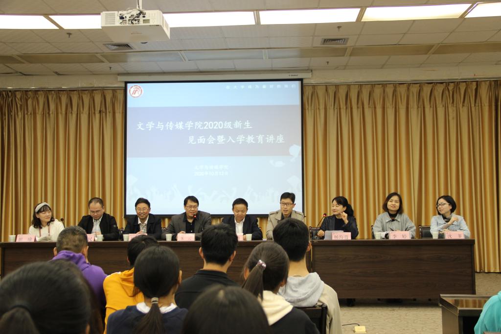 10月12日,2138cc太阳集团官网入口在江南校区图书馆六楼报告厅隆重举行2020级新生见面会暨入学教育讲座第二讲。院领导班子、系主任、两办主任参会。见面会由党总支副书记杨海蓉主持。