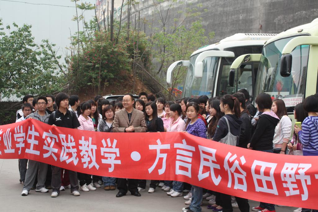 导航痕迹 首页 > 新闻通知 > 公司新闻 > 正文 公司新闻 通知公告 中文系组织员工赴旬阳进行方言民俗田野调查 发布人: 发布日期:2010年04月19日 阅读次数: 中文系历来重视实践教学,在抓好第一课堂教学的同时,多渠道、全方位组织员工开展丰富多彩的第二课堂实践教学。2010年4月18日,在杨运庚、郝礼军、邹棠华、韩晔四位老师的带领下,中文系07级汉语言文学专业95人奔赴旬阳县开展民俗文化调查研究。在出发前,系主任戴承元给同学们系统讲述了旬阳的民俗文化和孟达墓相关历史知识,使同学们不仅增长了知识,还进一步激发了调研兴趣。 到达旬阳,首先带领员工参观了旬阳民俗博物馆,同学们为博物馆丰富、精美的藏品而叹为观止,纷纷拍照留念。在参观展馆的同时,博物馆馆长――私人收藏家项勃先生给同学们讲述了他自己艰难的收藏史,使同学们亲身感受到民俗文物保护的不易。接下来参观了旬阳历史博物馆,灵崖寺、孟达墓等地,还对旬阳方言、民俗等进行了实际调查。通过此次实践调查,不仅使员工对方言、民俗的调查、研究方法有了一定了解,同时也激发了员工对方言、民俗的调查、研究兴趣,提高了员工理论学习与实践运用相结合的能力。