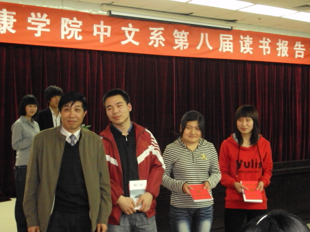 导航痕迹 首页 > 新闻通知 > 公司新闻 > 正文 公司新闻 通知公告 世界读书日献礼 发布人: 发布日期:2010年04月27日 阅读次数: 为迎接第十五个世界读书日,中文系系一年一度的读书报告会于2010年4月22日下午4:00在图书馆六楼报告厅隆重举行。此次大会由2138cc太阳集团官网入口中文系主办,公司社团联合会与国学读书社承办。参加此次报告会的有中文系党总支书记沈军、著名作家李春平、 中文系副教授王瑛以及中文系全体辅导员。 经过前两轮的初赛和复赛后,共有八名同学进入本次决赛。八位同学参赛的作品范围广泛,包括战争、爱情、励志等方面;体裁多样,有诗歌、戏剧、小说等。决赛中几位同学分别就个人对《秦腔》、《雷雨》、《巴黎圣母院》、《我的大学》、《击鼓》、《穆斯林的葬礼》、《伪满洲国》、《围城》八部著作中的认识价值、道德伦理价值、教育价值、政治价值、经济价值等方面谈了自己的心得体会。李春平作家和王瑛老师分别对他们的参赛作品一一进行了精彩点评。现场气氛也因此时而活跃,时而严肃,时而安静,时而激动,报告厅中掌声不断。两位评委老师就目前各参赛同学在现有阅读量和人生阅历的背景下对文学文本的精彩解读感到欣慰,同时还特别希望同学们在解读文学作品的时候,要注意既要能走进去也要能跳出来,要试图从作品、读者、艺术和文化等不同的角度去解读文学文本。 08级语文教育(1)班的冯鸣和08级汉语言文学(2)班的冯友芳成绩不相上下。评委老师商议通过现场提问的方式以分伯仲并敲定最终决赛结果:冯鸣获得此次读书报告会的第一名,冯友芳和赵云并列第二,刘庆春、汪菲菲、杨谋德获得第三名,陈昱洁和曲婉蓉获得优秀奖。