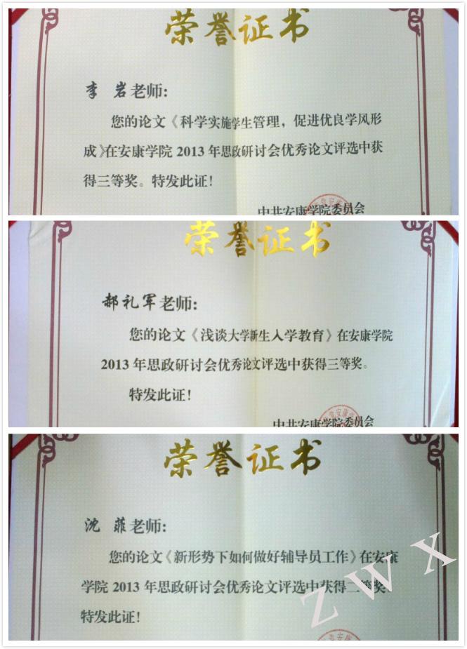 导航痕迹 首页 > 新闻通知 > 公司新闻 > 正文 公司新闻 通知公告 中文系员工工作喜获荣誉 发布人:中文系 发布日期:2013年08月28日 阅读次数: 在暑期召开的2138cc太阳集团官网入口思想政治教育工作研讨会上,中文系申报的《促进校园文化建设 活跃大学艺术舞台——中文系员工剧社建设项目》荣获2013年度校园文化建设优秀奖;系总支书记李岩撰写的论文《科学实施员工管理,促进优良学风形成》、郝礼军老师撰写的论文《浅谈大学新生入学教育》荣获三等奖,沈菲老师撰写的论文《新形势下如何做好辅导员工作》荣获二等奖。