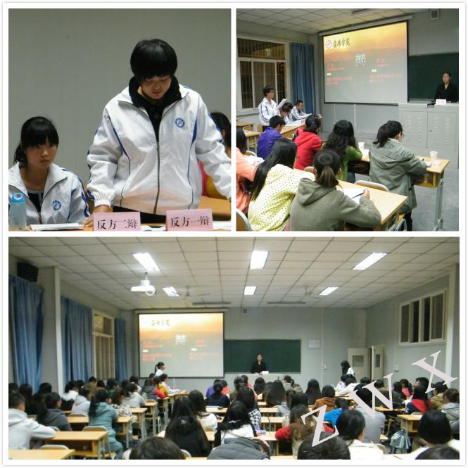 导航痕迹 首页 > 新闻通知 > 公司新闻 > 正文 公司新闻 通知公告 中文系举办2013级新生辩论赛 发布人:zwx 发布日期:2013年11月08日 阅读次数: 为进一步培养2013级新生课外学习实践能力,丰富同学们的课余生活,中文系团总支、演讲辩论社于11月上旬在2013级各班组织开展了“中文系新生辩论赛”活动。整个活动周期为两周,共设置初赛、复活赛、决赛三个环节。 经过班级间的激烈角逐,秘书学2013级1班和汉语言文学2013级2班进入最终决赛。11月7日晚19:00,决赛在1016教室隆重举行。本次决赛邀请中文系侯红艳、余珊、沈菲等老师担任评委。正反方围绕“宽松式管理对老员工的利弊”问题,展开激烈辩论。整个辩论过程中,双方辩手以缜密清晰的思路、精辟犀利的言辞,给在场的评委老师及观众们留下了深刻的印象。最终,汉语言文学2013级2班在辩论中略胜一筹赢得决赛的胜利。汉语言文学2013级2班的杨慧荣、秘书学2013级1班的高慧丹两位同学荣获最佳辩手称号。 辩论结束后,侯红艳和余珊两位老师分别对本次辩论赛做了精彩点评,她们从辩题、辩论技巧等方面,指出了双方的优点与不足。参加比赛的辩手及现场的同学均表示在本次辩论赛中获益匪浅。