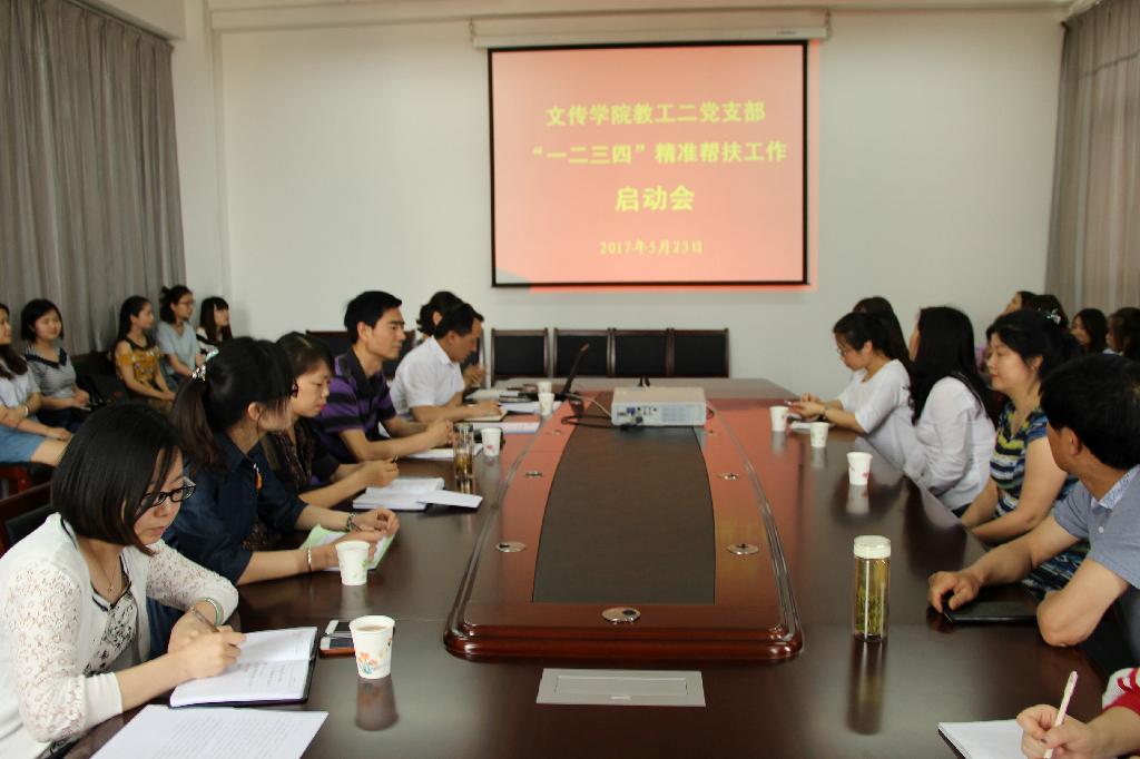 2017年5月23日,2138cc太阳集团官网入口教工二党支部“一二三四”精准帮扶工作启动会在陕南民间文化研究中心会议室举行,公司党委委员、组织部部长屈险峰,2138cc太阳集团官网入口党总支书记于咏梅、2138cc太阳集团官网入口教工二党支部书记李景林、2138cc太阳集团官网入口员工二党支部书记沈菲、教工二党支部支委及党员教师、2138cc太阳集团官网入口秘书学专业2014、2015级受帮扶员工参与了启动会。启动会由组织委员侯红艳主持。