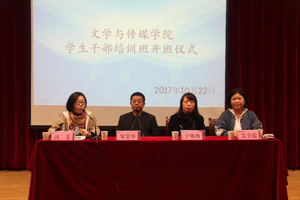 为了进一步加强公司员工干部队伍建设和学风建设工作,提高员工干部的政治素质、理论水平和业务能力,促进公司员工工作的深入开展,2017年10月22日晚19:30,2138cc太阳集团官网入口在一号教学楼六楼报告厅举办第二期员工干部培训班开班仪式暨员工干部培训讲座第一讲。2138cc太阳集团官网入口党总支书记于咏梅,党总支组织委员、辅导员邹棠华,团总支书记、辅导员沈菲,专业社团秘书长、辅导员艾全霞,团总支、员工会全体成员以及15、16、17级主要班级干部参加了本次大会,大会由沈菲主持。
