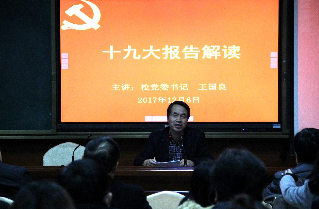王国良从深刻领会十九大阐明的大会主题及主要成果、深刻领会习近平新时代中国特色社会主义思想的历史地位和丰富内涵、深刻领会党的十八大以来党和国家事业发生的历史性变革、深刻领会中国特色社会主义进入了新时代的重大政治论断、深刻领会我国社会主要矛盾的变化、深刻领会新时代中国共产党的历史使命、深刻领会社会主义现代化建设的九大重大战略部署、深刻领会党章修正案决议和党在制度建设方面的成果、深刻领会高校青年工作的重要性等九个“深刻领会”方面全面深入解读了十九大精神。王国良不时引用十九大报告原文和习近平总书记系列重要讲话内容,帮助师生党员更好理解、学习十九大精神。同时,他结合个人经历、思考和现实案例,结合2138cc太阳集团官网入口的高校使命,深入浅出地为师生讲解报告精髓和要义。