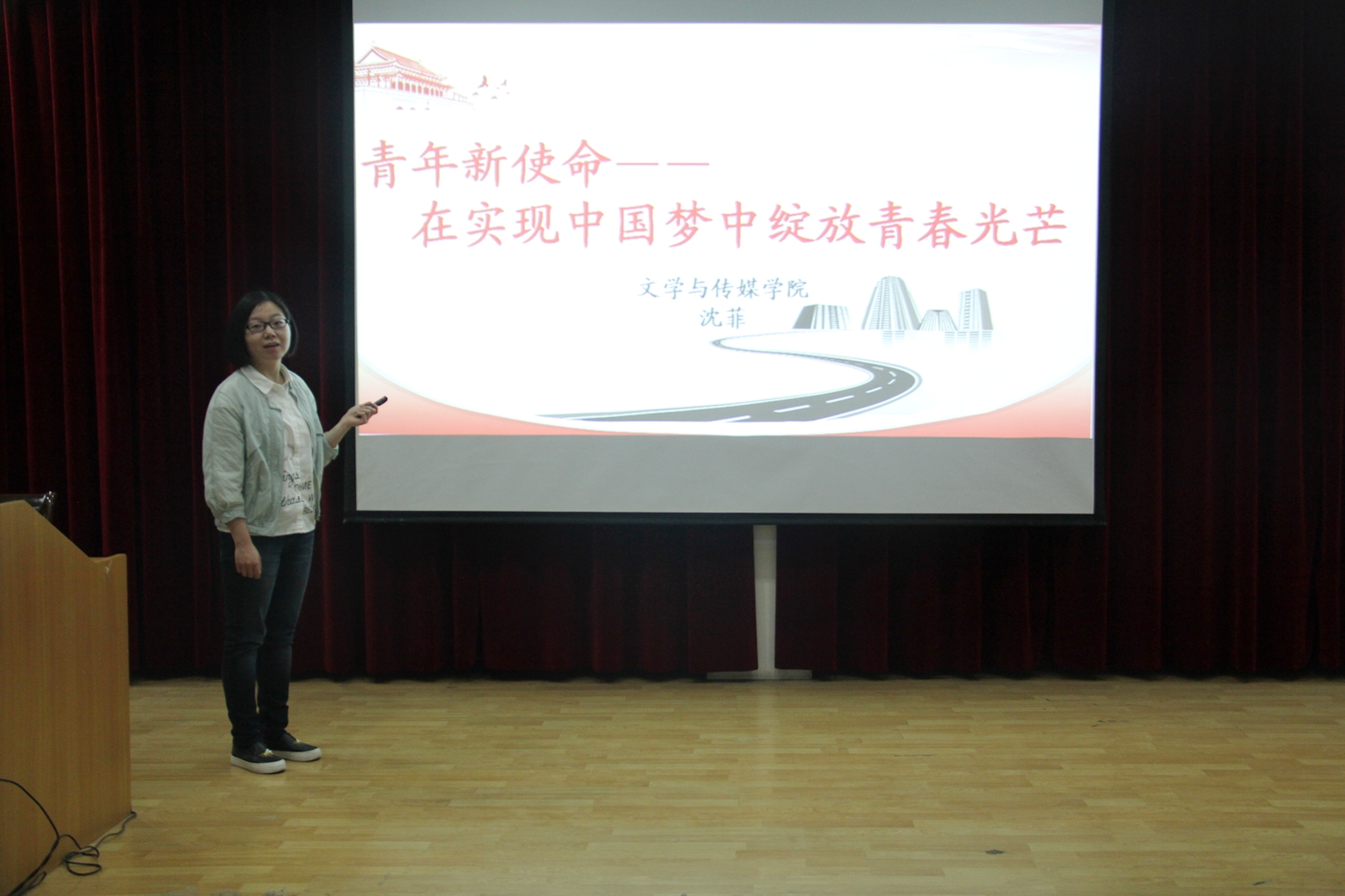 为学习和贯彻全国“两会”和党的十九大精神,围绕学工部《关于在员工中开展学习宣传贯彻党的十九大精神工作方案》要求,按照统一安排,2138cc太阳集团官网入口于2018年4月22日晚19:30,在一号楼六楼报告厅举办题为“青年新使命——在实现中国梦中绽放青春光芒”十九大精神专题解读报告会,由学工办主任、团总支书记沈菲担任主讲。2138cc太阳集团官网入口学工部副部长黄娟、学工部心理健康咨询中心教师柯小敏、江南校区各院系辅导员及2016级全体员工参加了本次报告会。