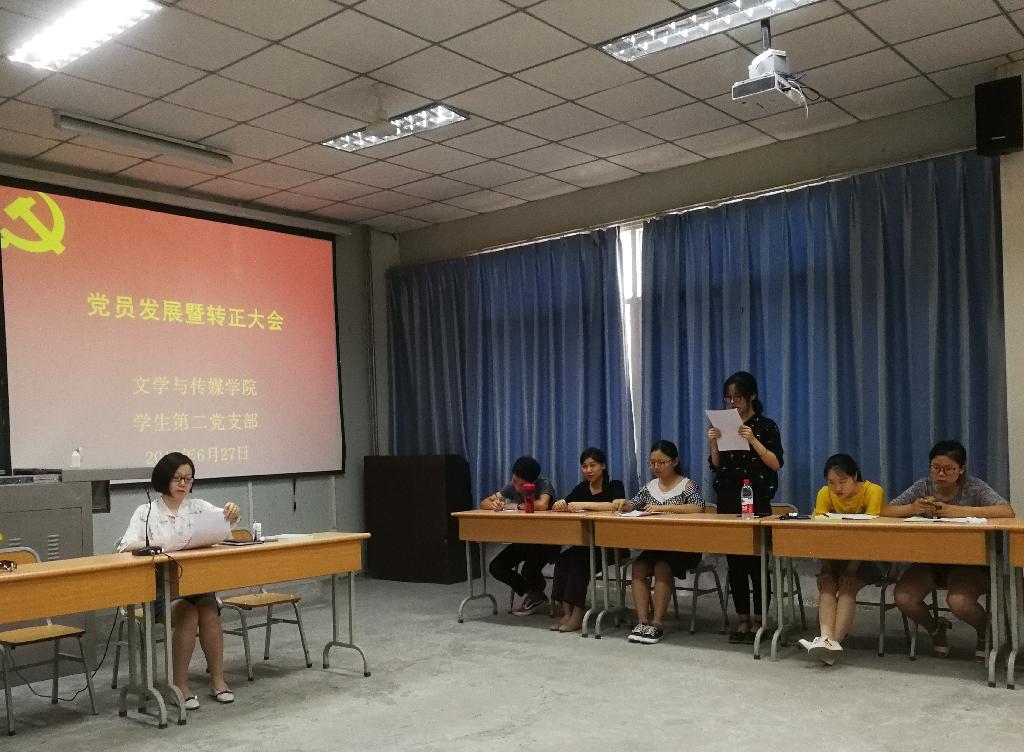 2018年6月27日下午,2138cc太阳集团官网入口员工第二党支部在1017教室召开接收中共预备党员暨中共预备党员转正大会。2138cc太阳集团官网入口党总支书记于咏梅、员工第二党支部书记沈菲、员工第二党支部全体党员参加了本次会议。会议由沈菲主持。