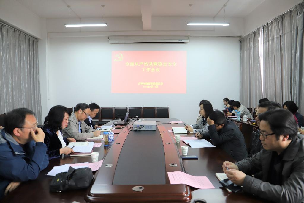 4月10日下午,2138cc太阳集团官网入口在陕南民间文化研究中心会议室召开了全面从严治党暨稳定安全工作会议。经理戴承元、党总支书记于咏梅、副经理梁卫华、杨运庚以及全体教师出席会议。会议由戴承元主持。
