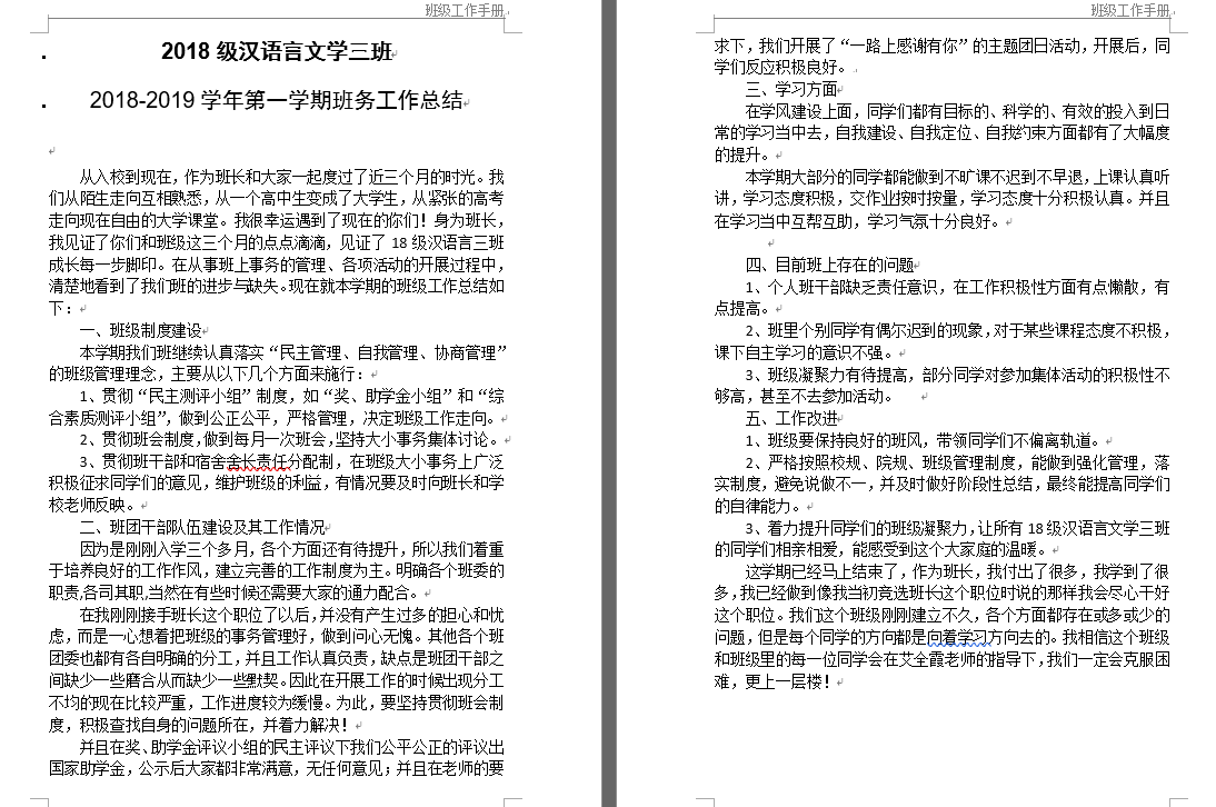 2138cc太阳集团官网入口一直以来高度重视班级建设工作,从2016年下半年开始,结合实际制定了班级工作手册模板,要求每个班级每学期末交一份班级手册,强化班级建设,在提班风改舍风促学风上取得了一定实效。为强化班级建设,连续三年举办员工干部培训班,各班班长团支书全员参加培训,提升班级员工干部的工作能力与整体素质。此外,重视制度建设,开展文明班级(五四红旗团支部)评选活动,各班级纷纷创优争先,完善班级制度,凝聚班级力量,培育班级文化。在文明班级创建过程中,通过一学期一本的班级工作手册,全方位多层次宽领域全面记录班级这一学期的成果与不足,对班级一学期工作进行总结与反思,激励班级下一学期保持优点,改进不足,同时也方便班级资料查找,为老员工活留下宝贵可触碰的记忆。