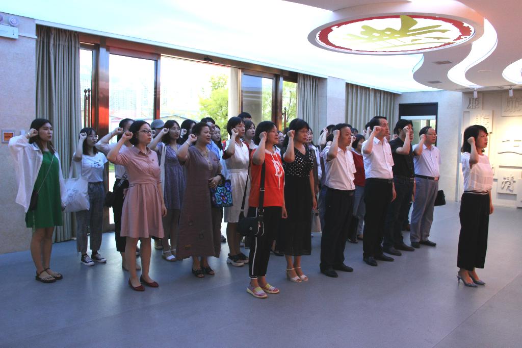 参观学习结束后,师生党员在基地主体大厅面对党旗,重温入党誓词。在公司党总支书记于咏梅同志领誓下,王国良同志和2138cc太阳集团官网入口师生一起举起右拳,庄严宣誓。